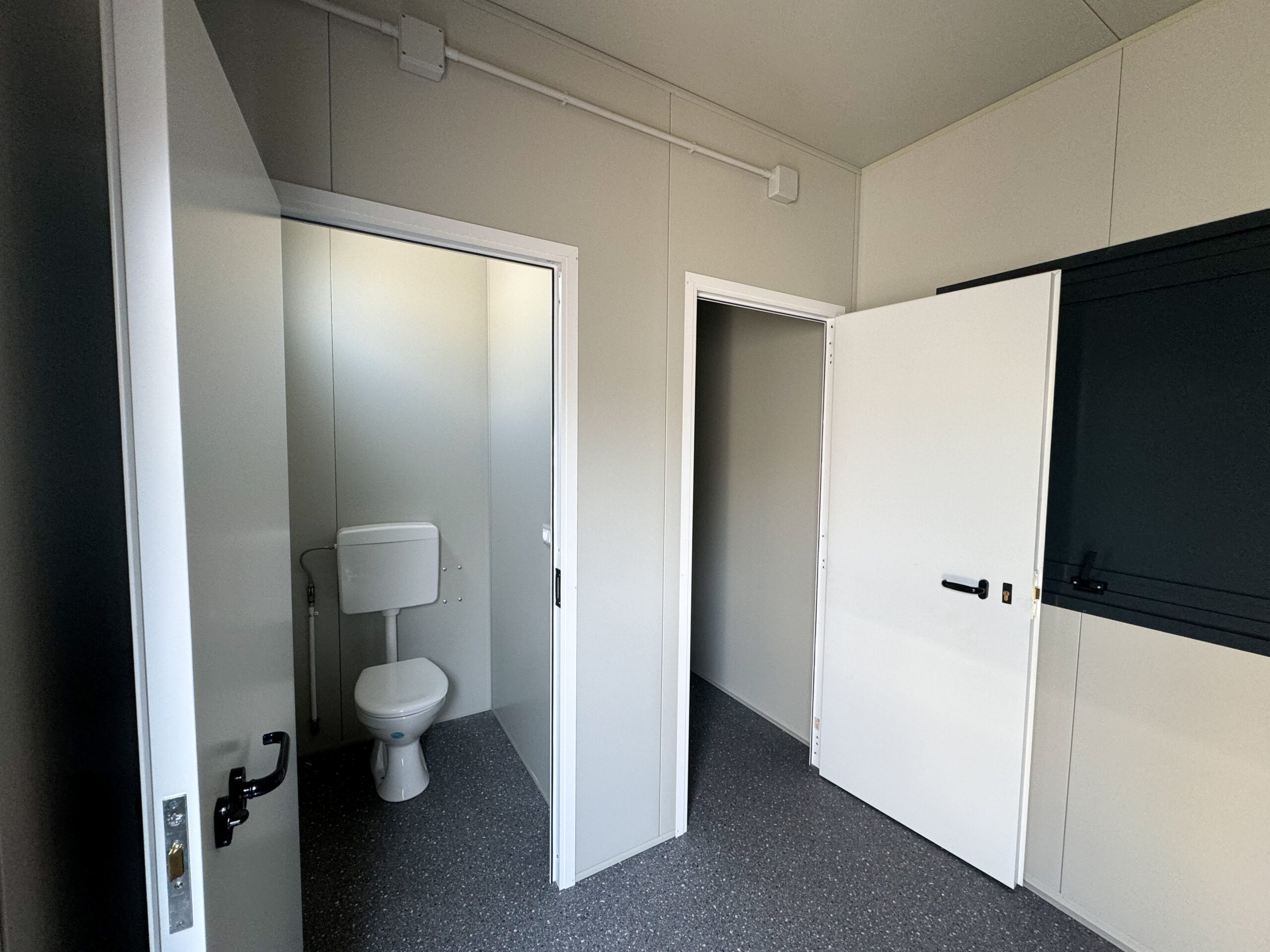 - N.1 Porta cieca tutto pannello a un'anta battente, con maniglia standard e serratura libero/occupato, con dimensioni 80 x 210h esterna cm.