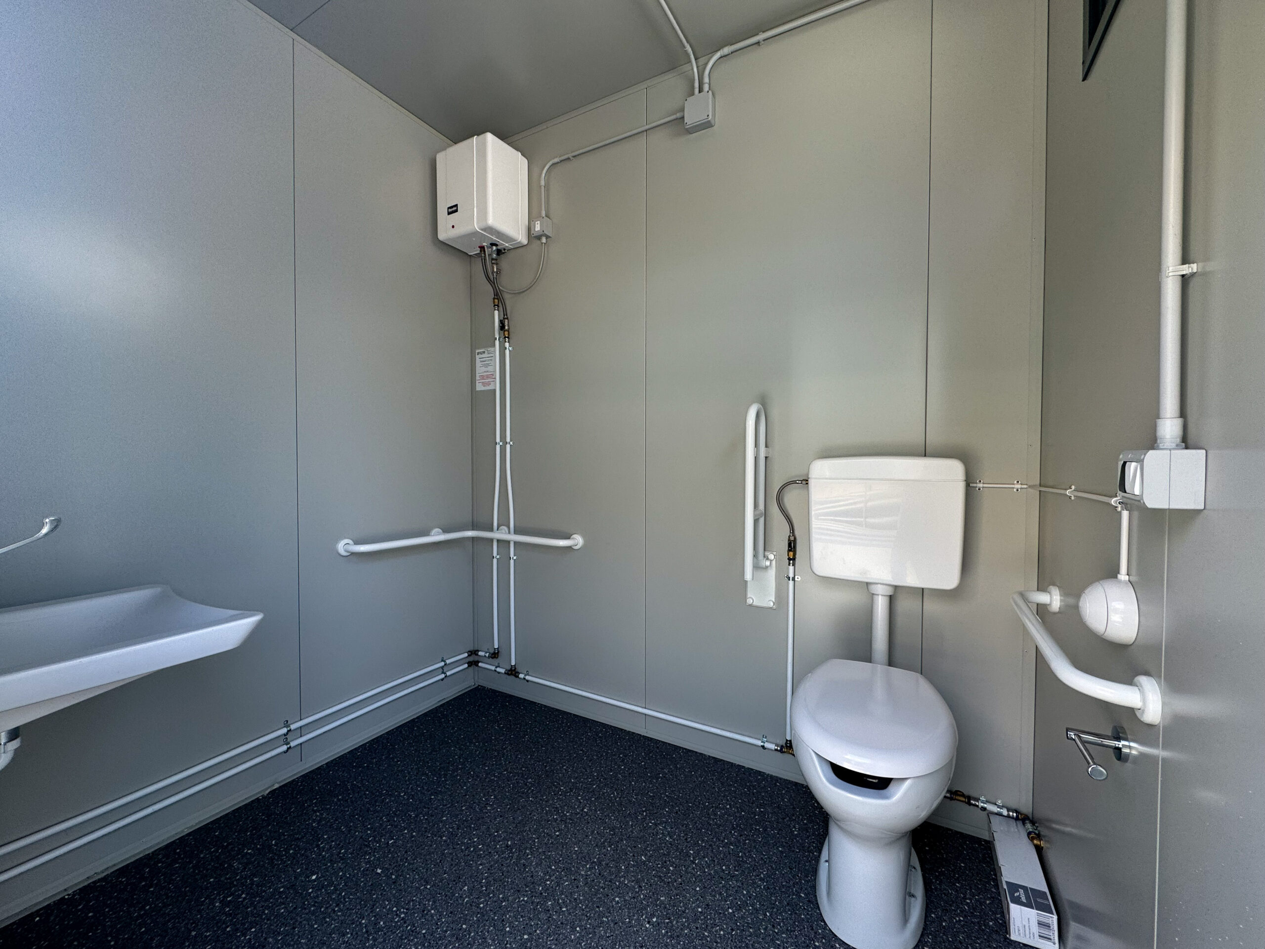 - N.1 Bagno disabile completo di sanitari (Wc + Lavabo) e relativi maniglioni.