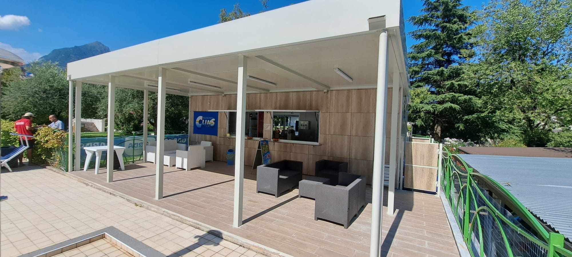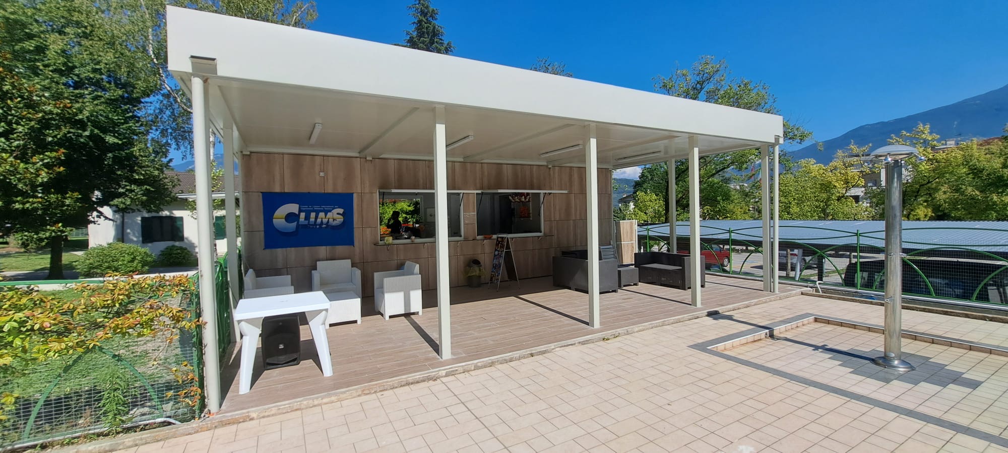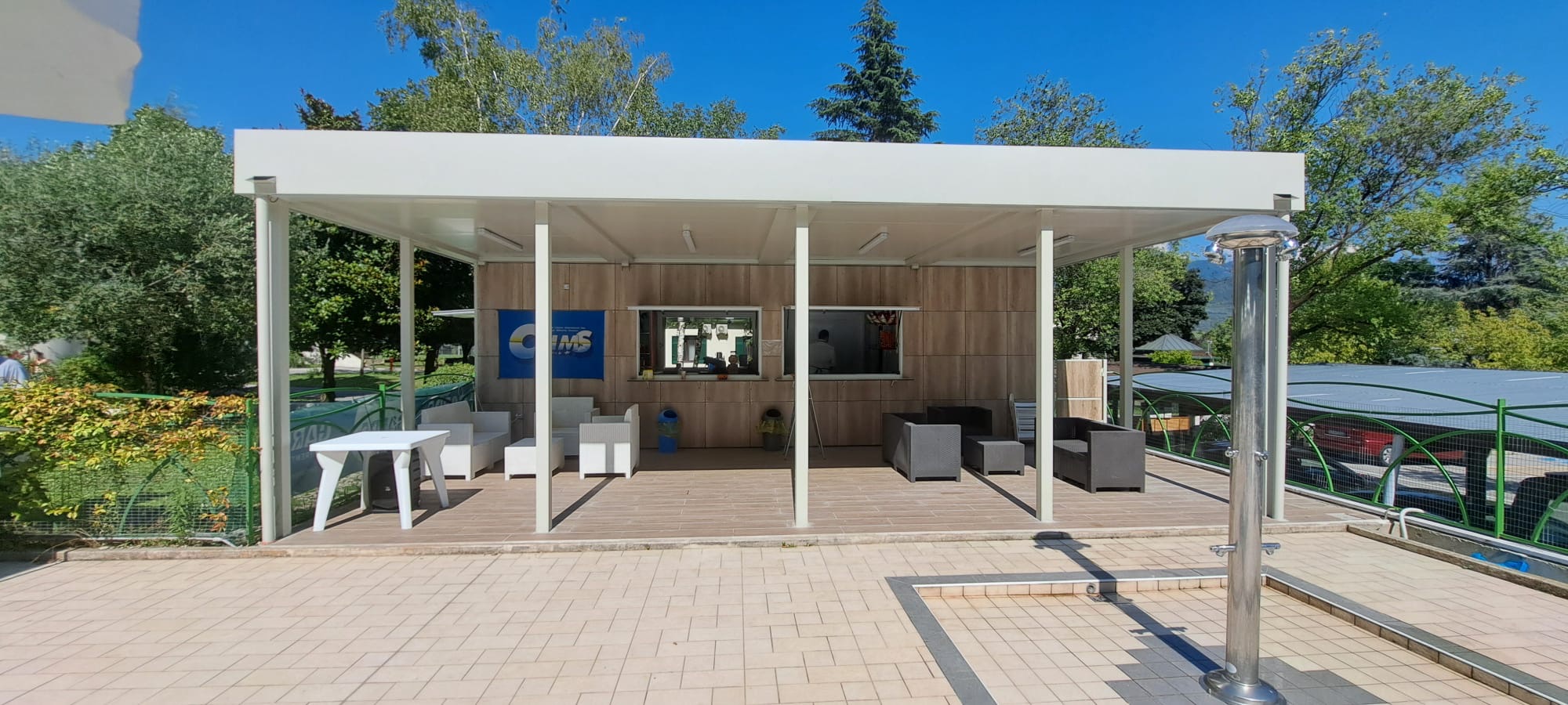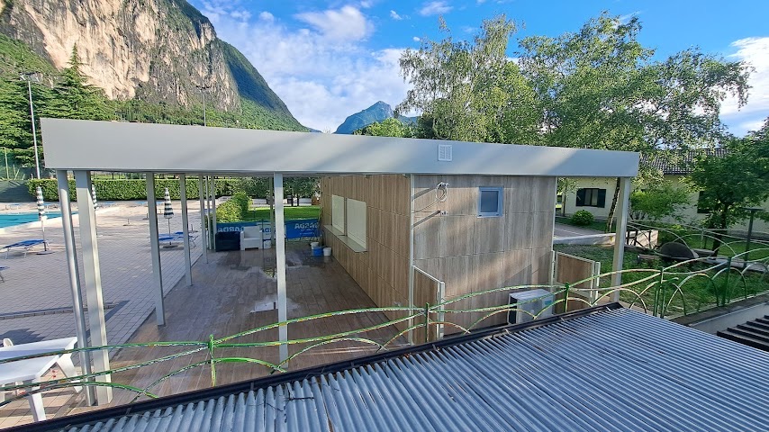 con struttura in tubolare e lattonerie presso piegate, a una falda, rivestite con: