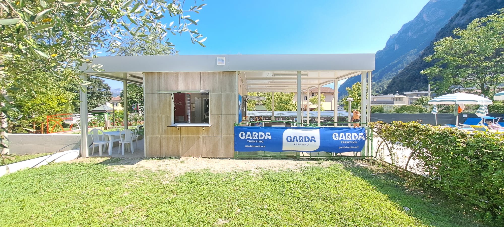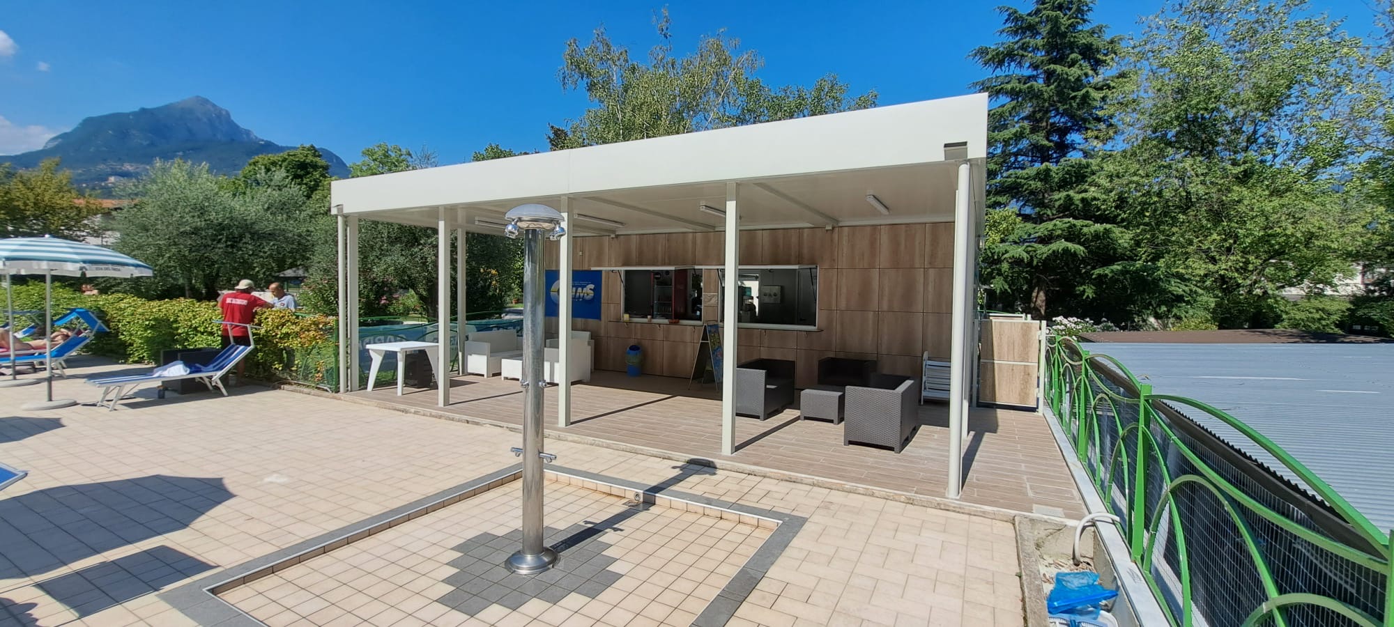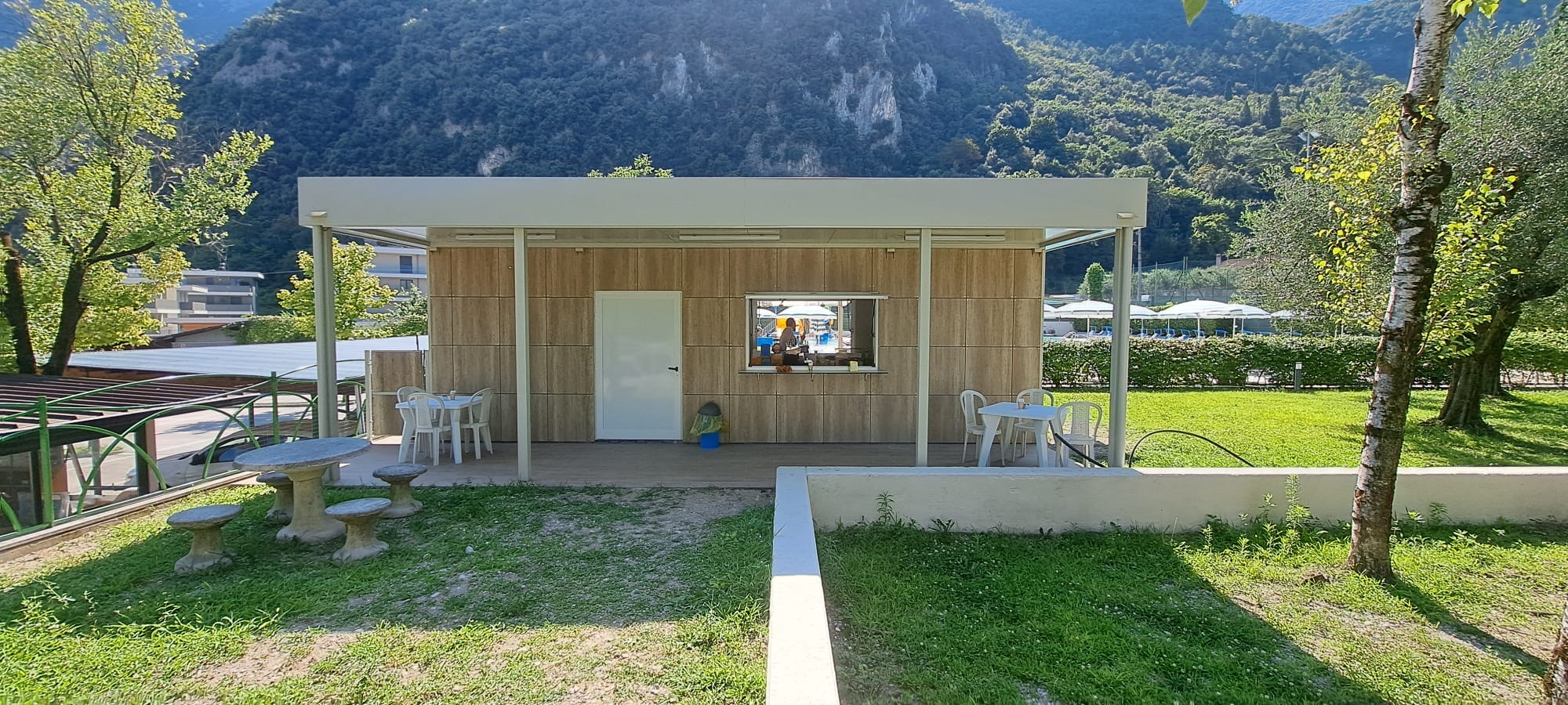 con struttura in tubolare e lattonerie presso piegate, a una falda, rivestite con: