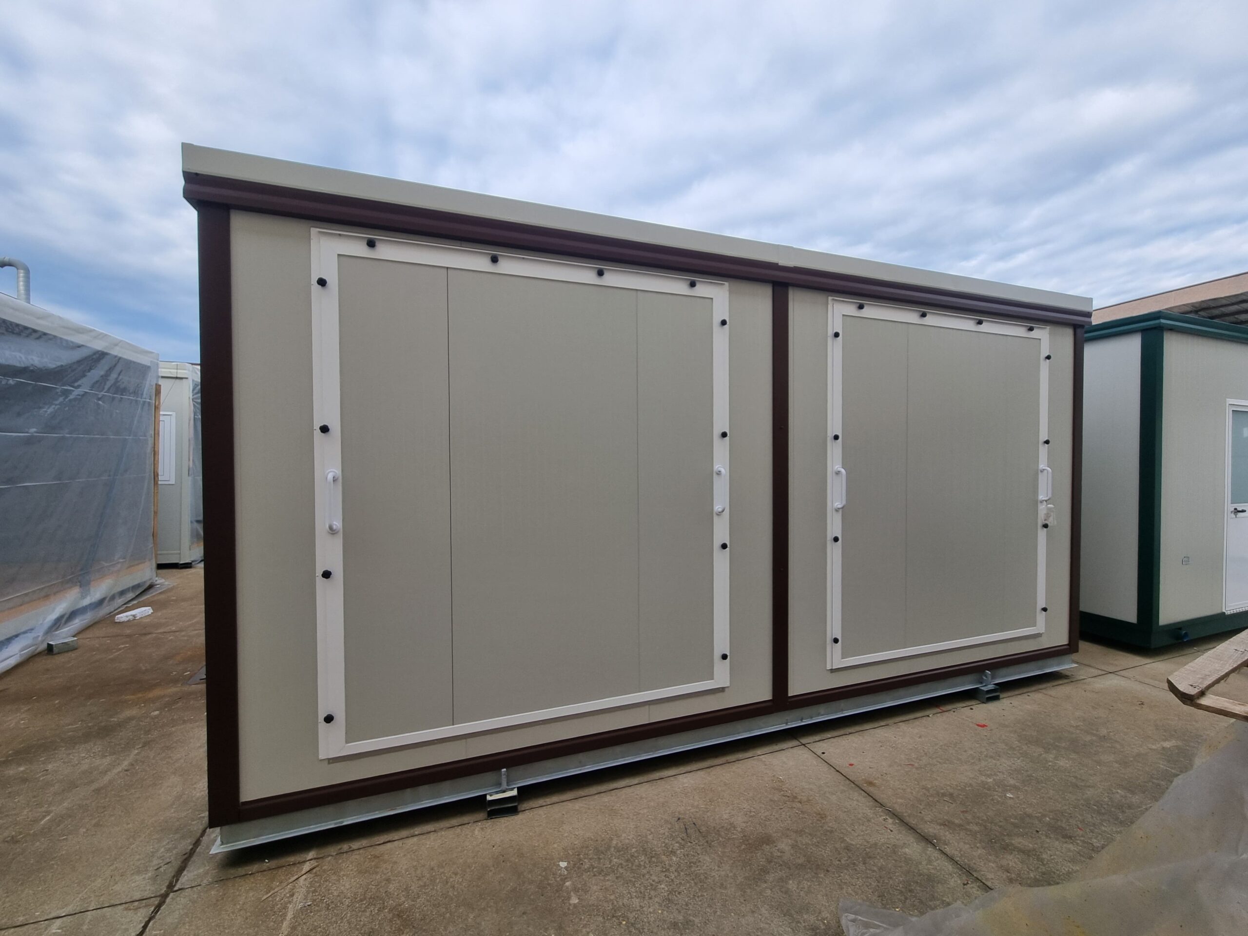 Secondo tetto a 1 falda, con struttura in tubolare e LATTONERIE presso piegate, rivestite con lamiera PREVERNICIATA BG RAL 8016, per massima ermeticità e durata nel tempo.