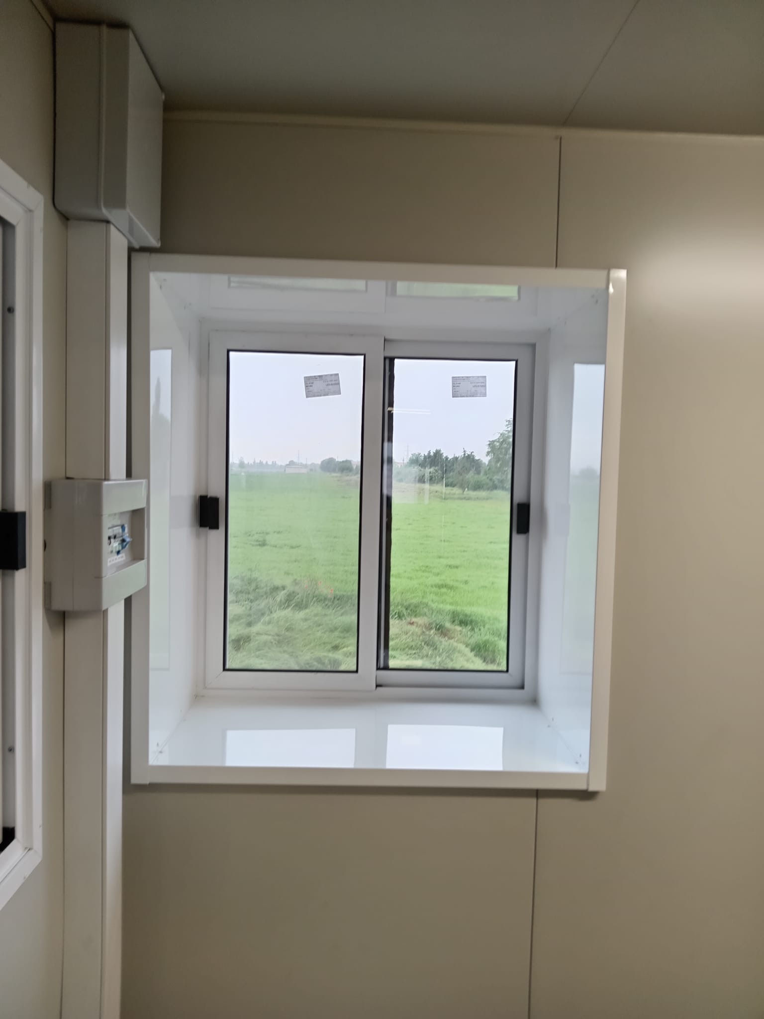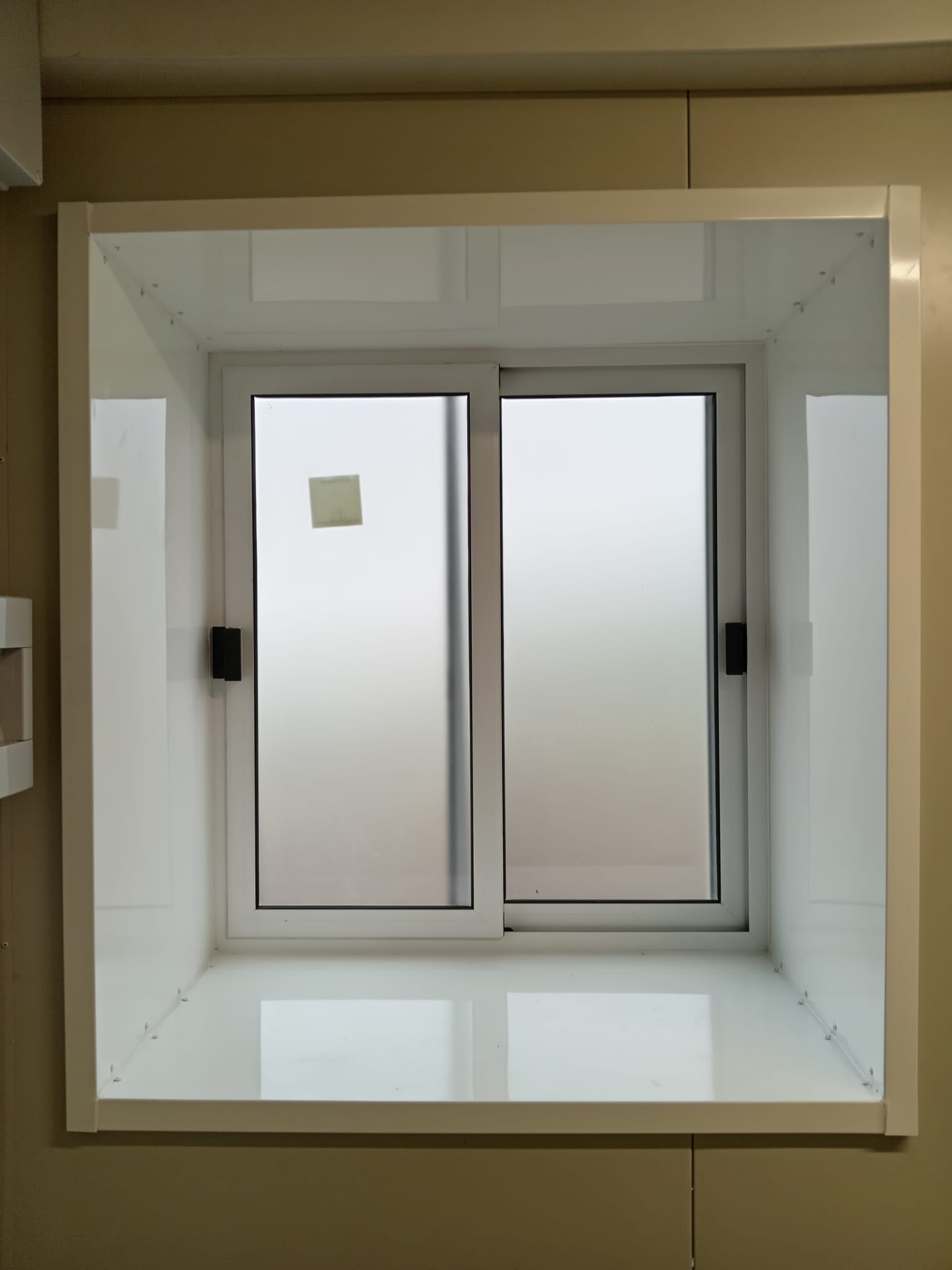 N.1 Finestra con apertura a vasistas, completa di zanzariera fissa esterna, con dimensioni 100 x 50h esterna cm.