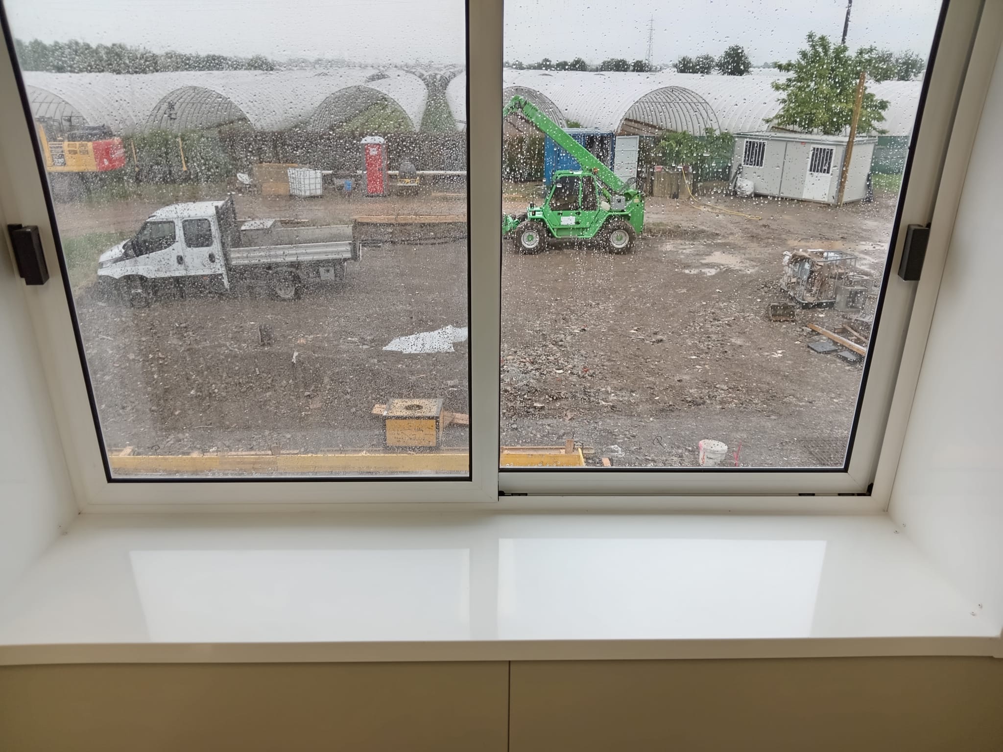 N.4 Finestre a due ante scorrevoli, complete di zanzariera scorrevole, con dimensioni 160 x 100h esterna cm.