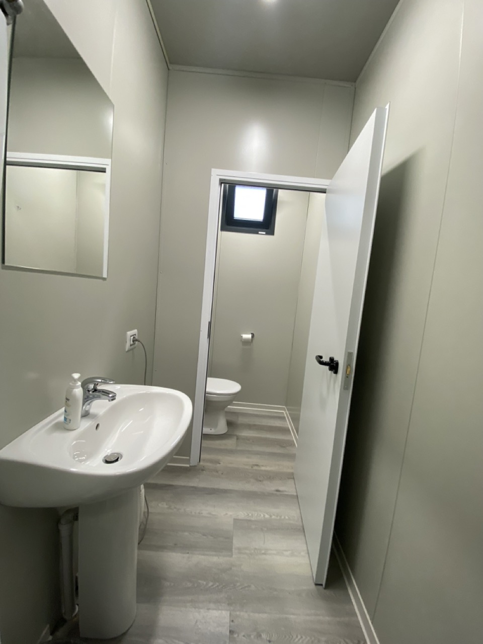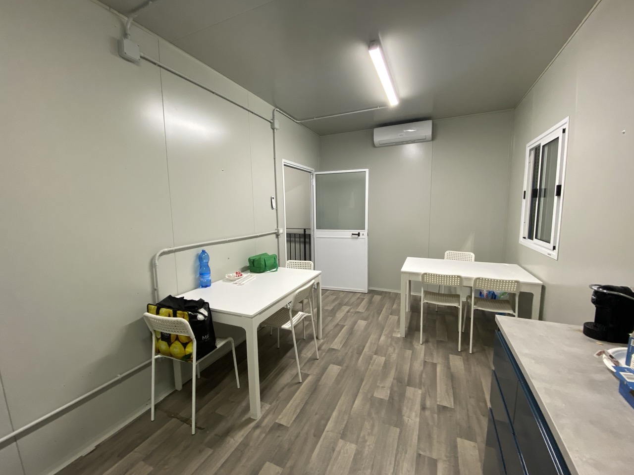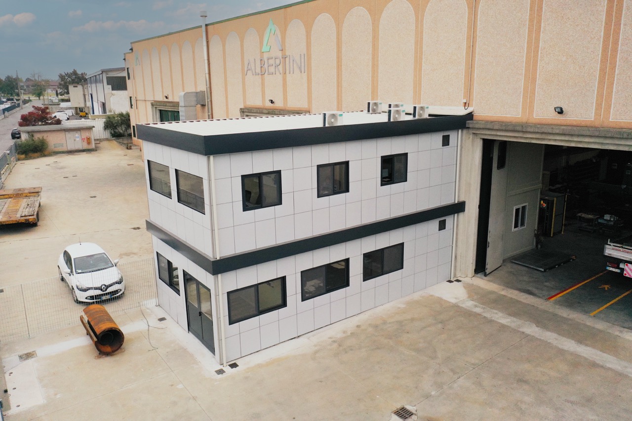 Basamento alta portanza con struttura in tubolare, rivestito con lamiera grecata, rivestito con Pannello parete sp.100 mm – Poliuretano, rivestito con legno IDRO V100 sp.18 mm, rivestito con: