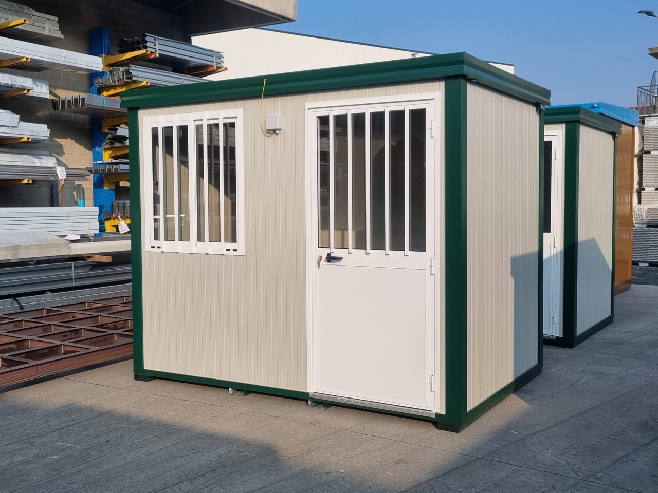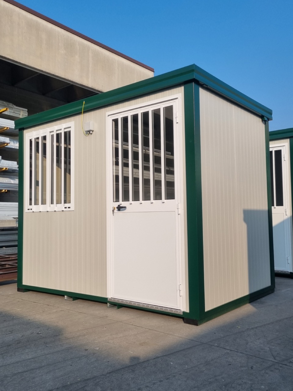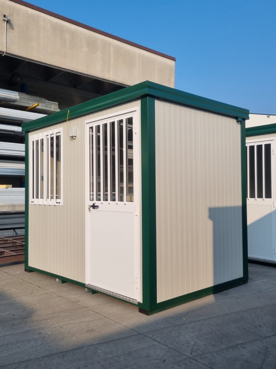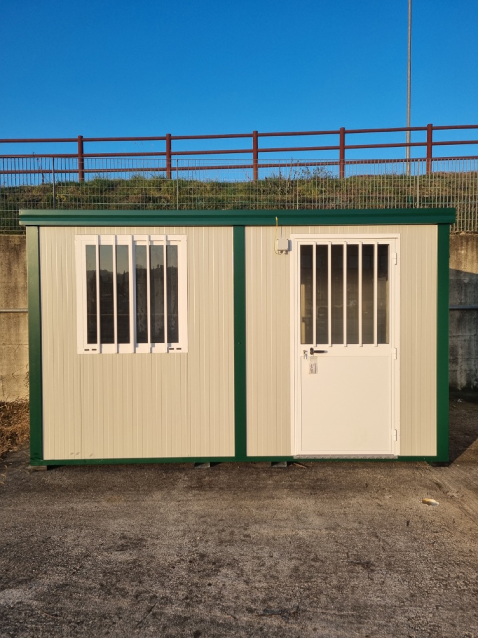 Monoblocco 300 x 200 cm. Il più piccolo della produzione standard. Adatto per cantieri di piccole dimensioni e spazi ridotti, con struttura presso piegata sp.15/10 mm, saldata in continuo colore RAL 6005, fondo finire anticorrosivo.