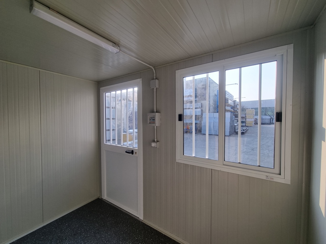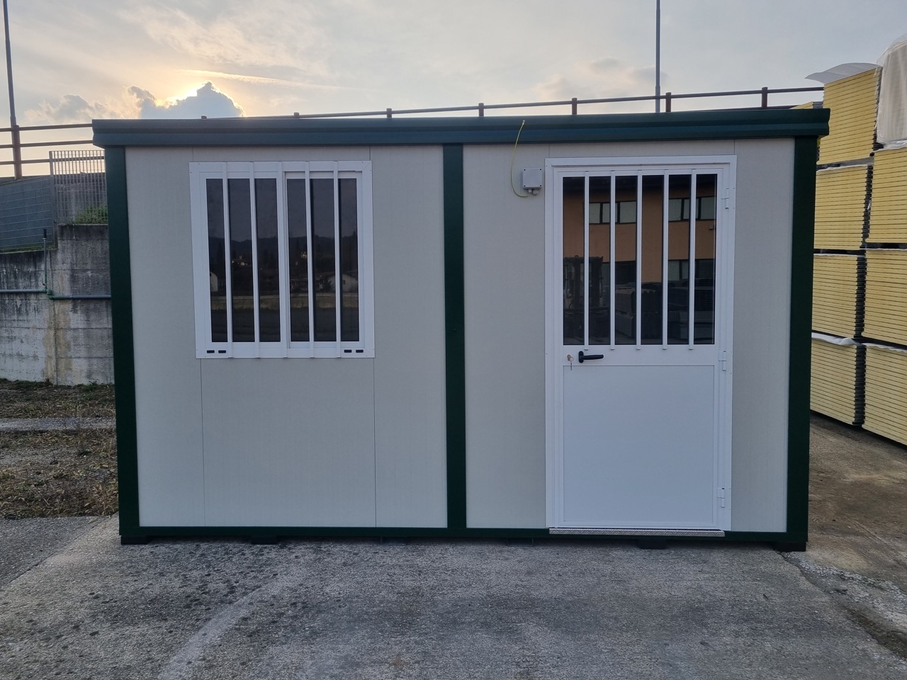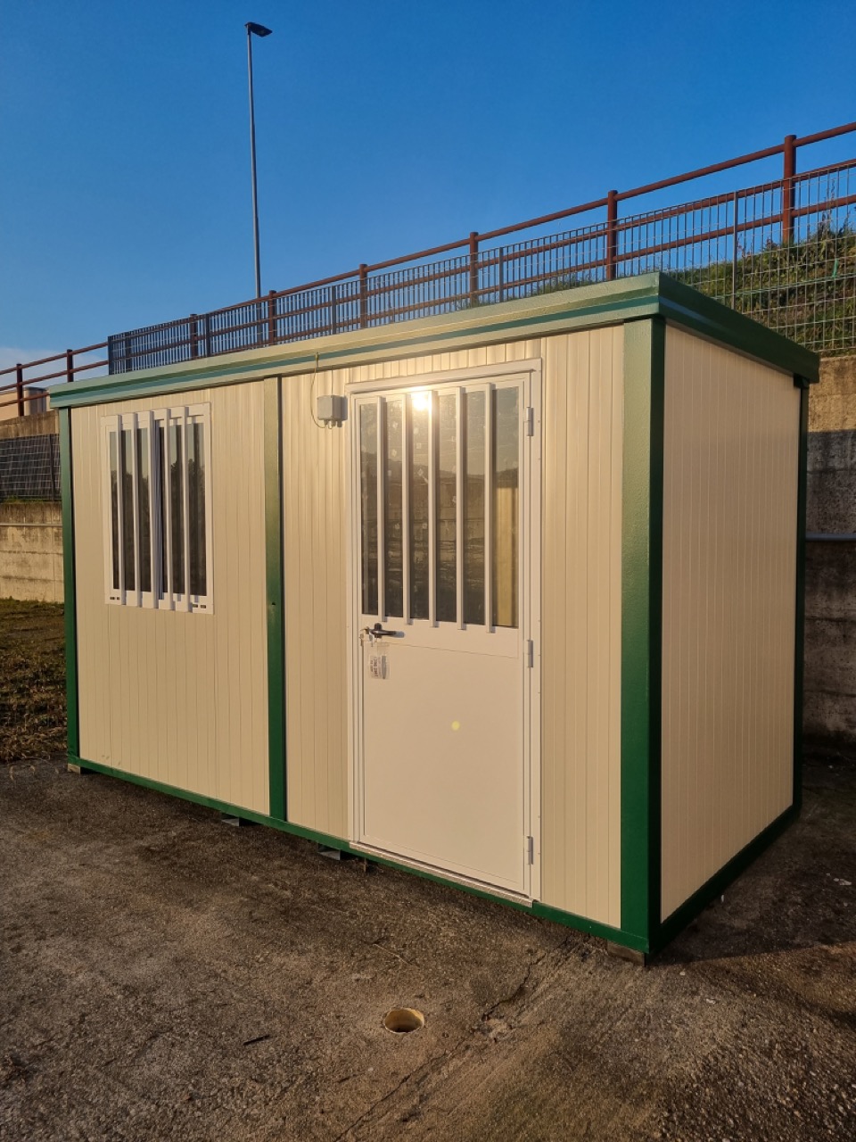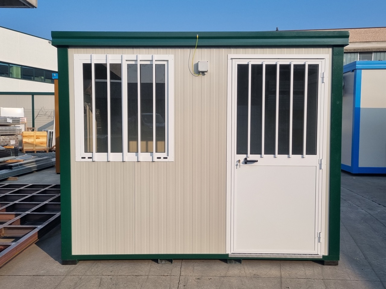 Monoblocco 300 x 200 cm. Il più piccolo della produzione standard. Adatto per cantieri di piccole dimensioni e spazi ridotti, con struttura presso piegata sp.15/10 mm, saldata in continuo colore RAL 6005, fondo finire anticorrosivo.