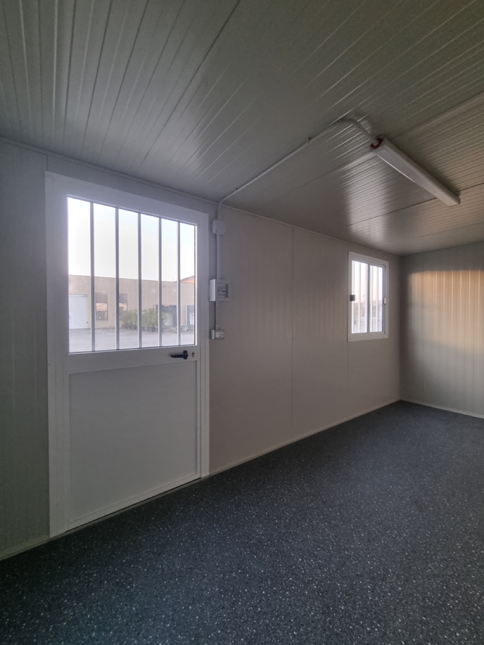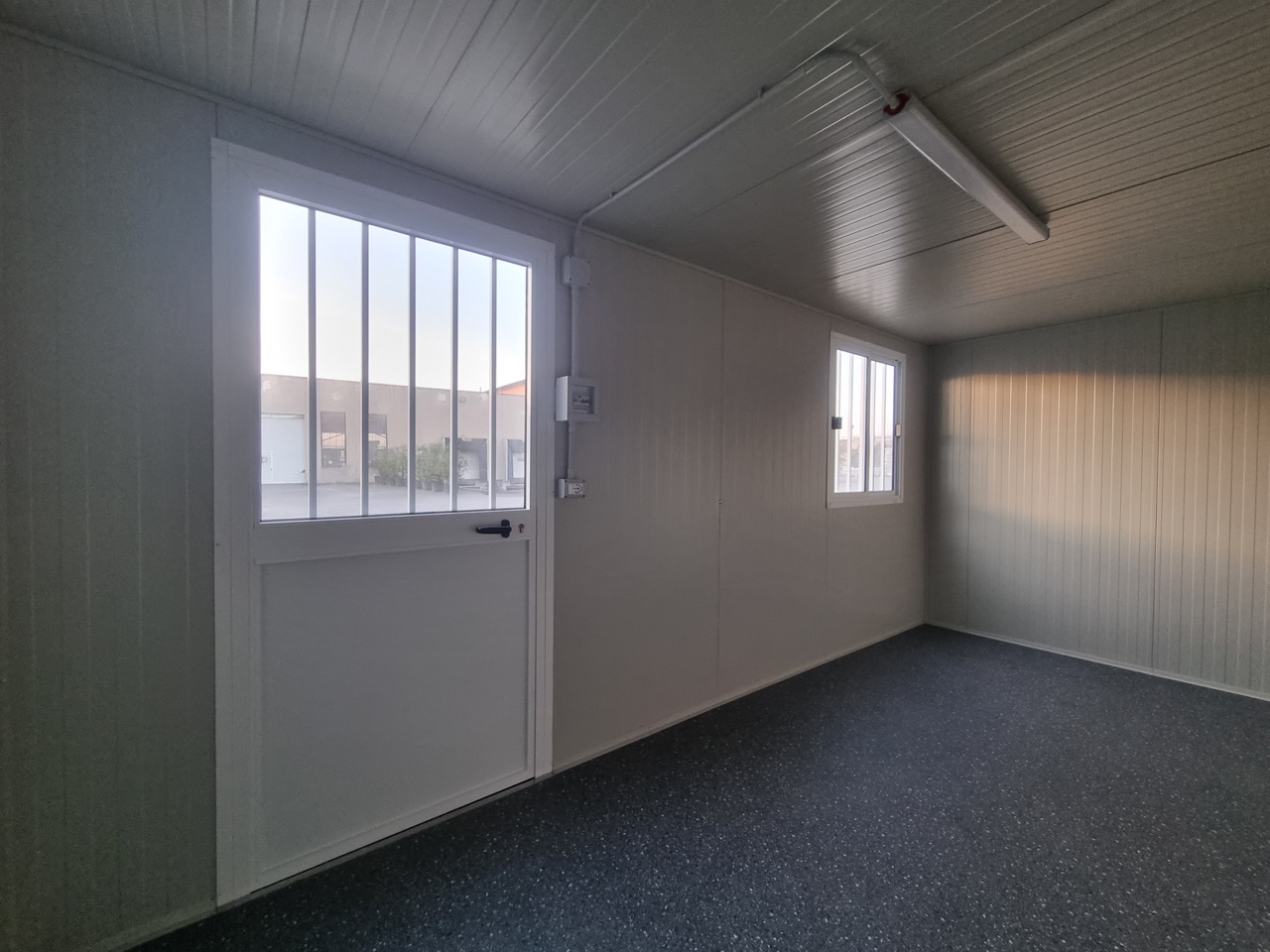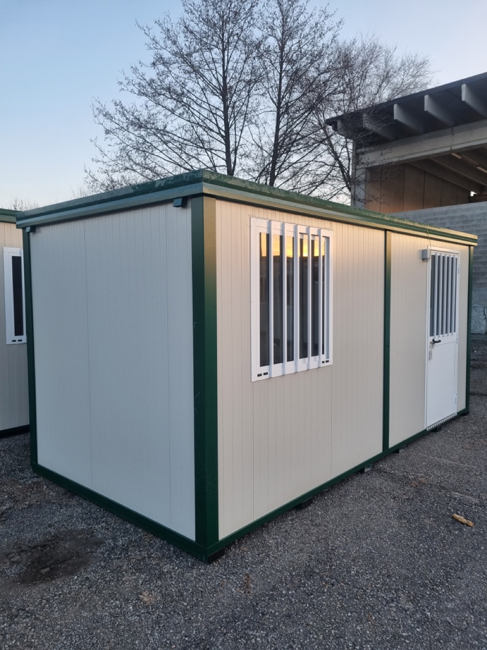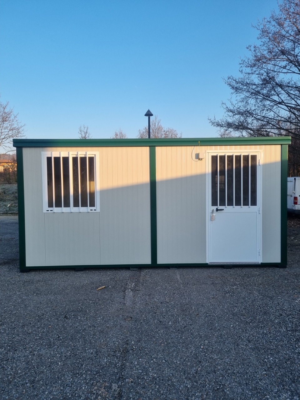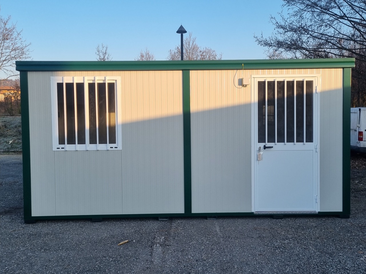 Monoblocco 500 x 250 cm adatto per cantieri di medie/grandi dimensioni. Ideale per uffici, sale riunioni, infermerie e mense, con struttura presso piegata sp.15/10 mm, saldata in continuo colore RAL 6005, fondo finire anticorrosivo.