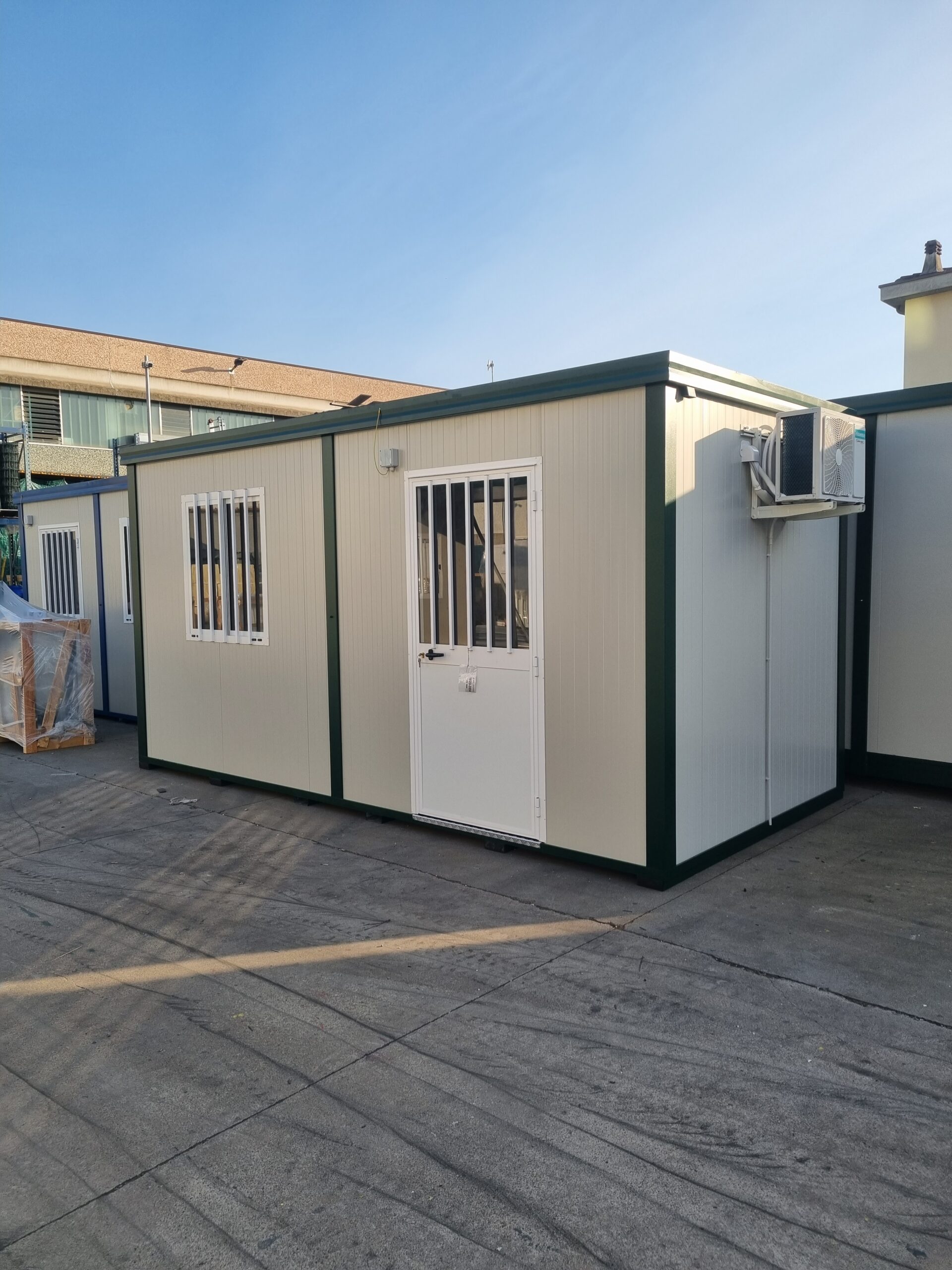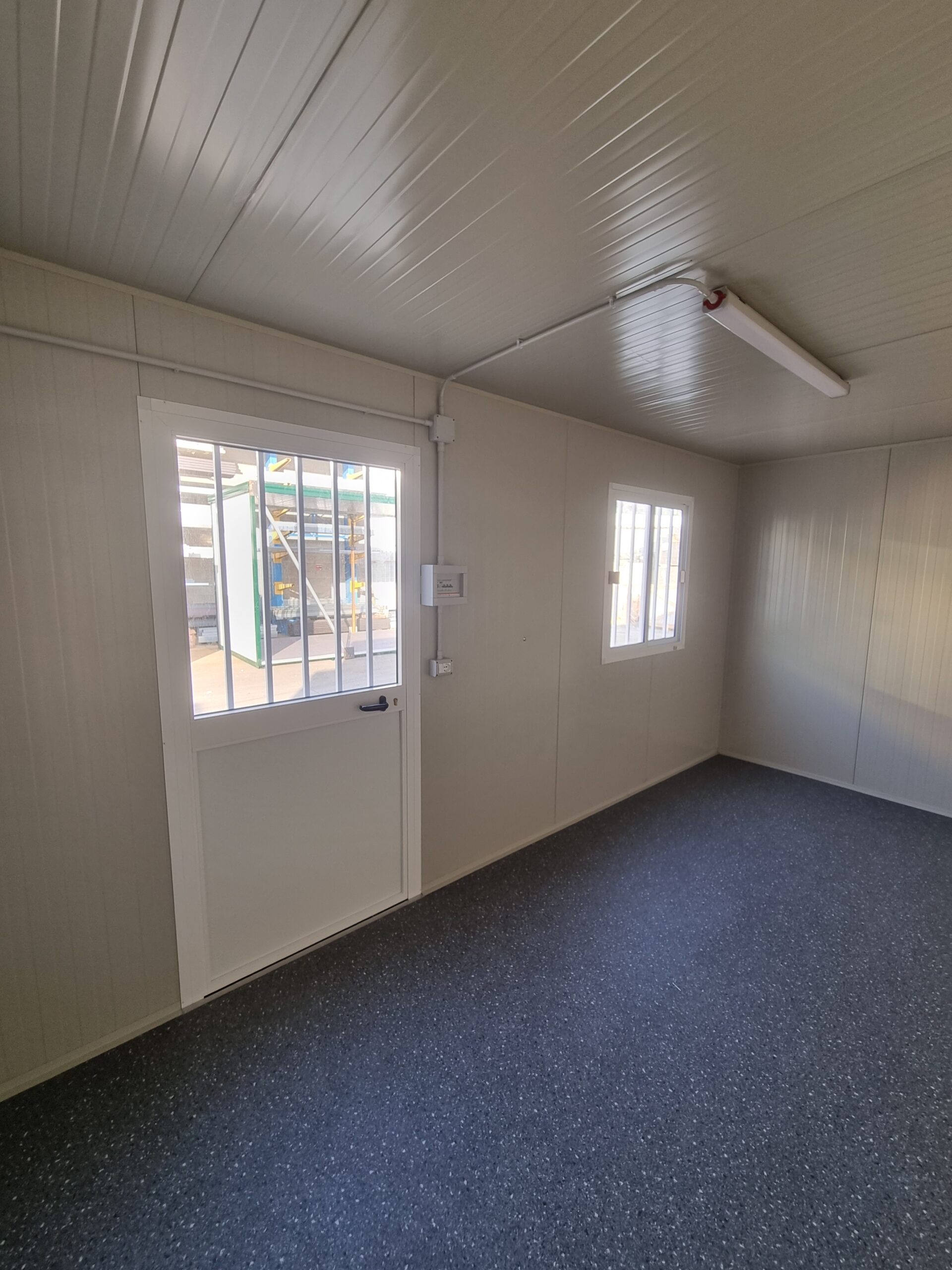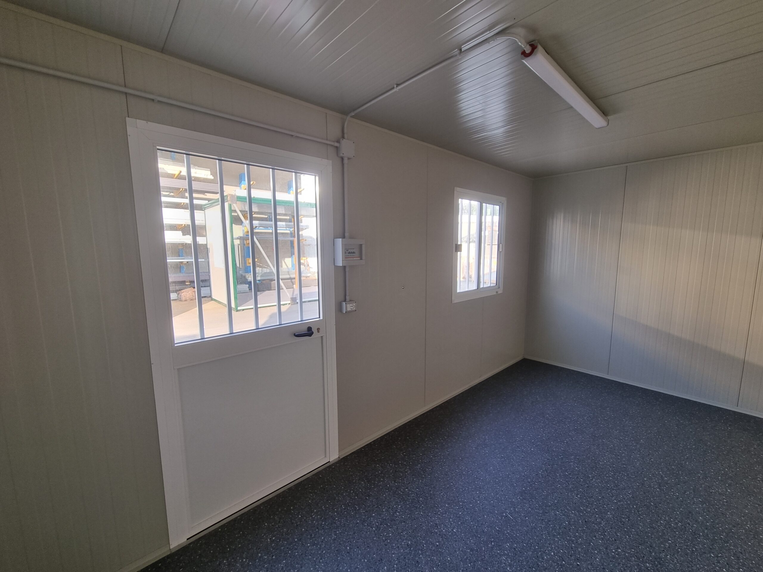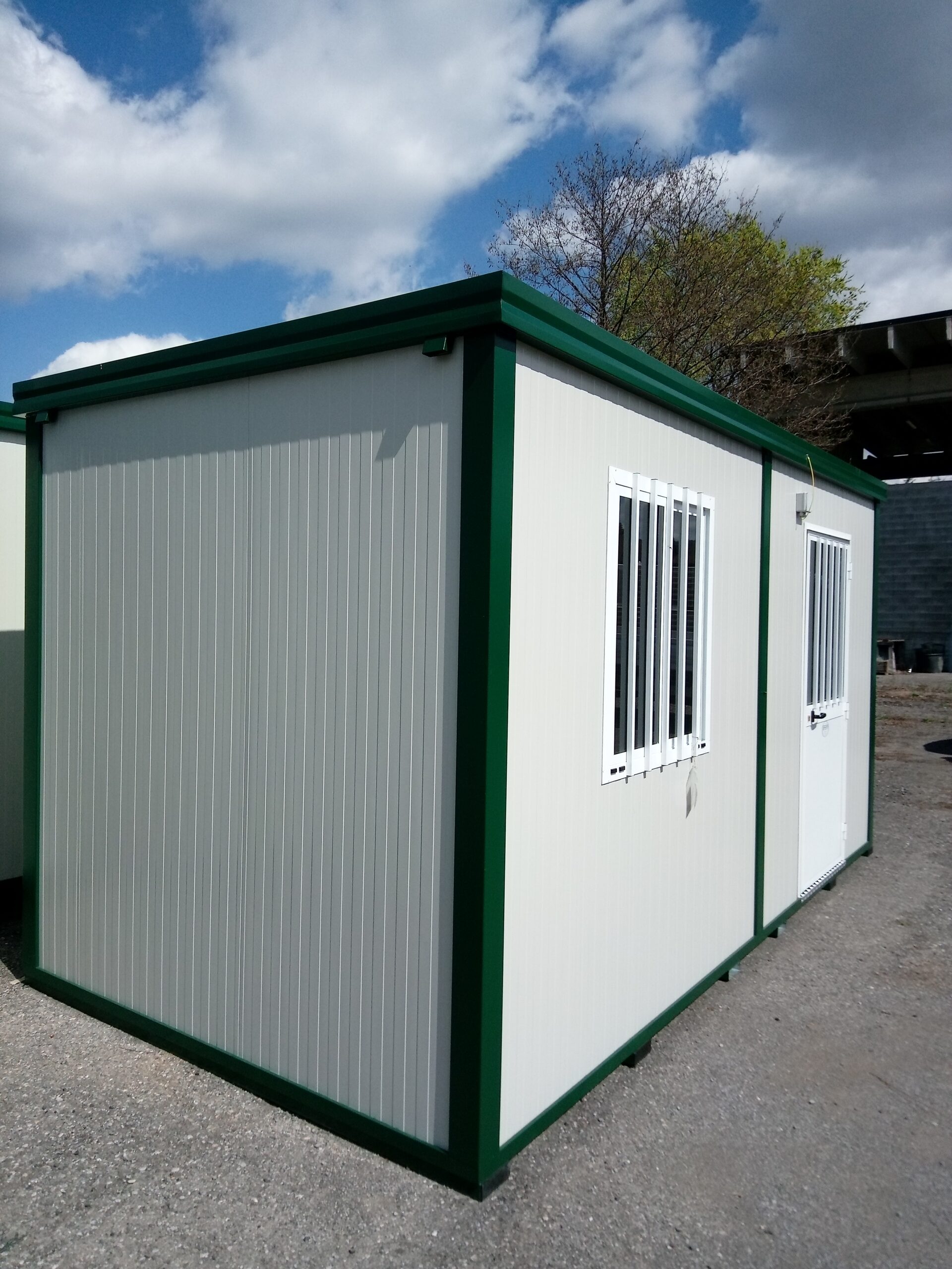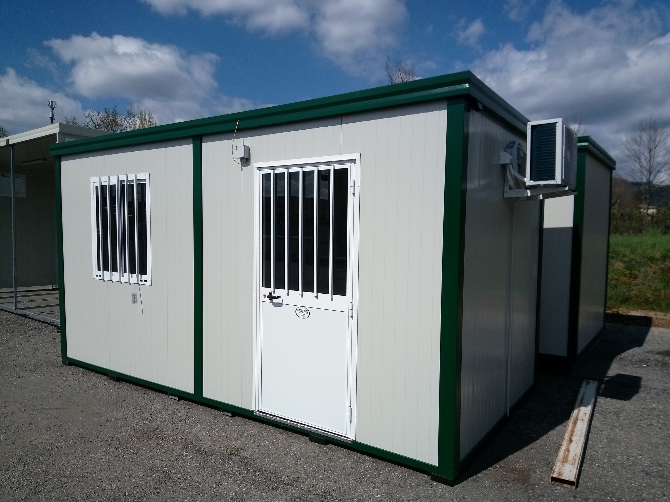Basamento alta portanza con struttura in tubolare, rivestito con lamiera grecata, rivestito con legno IDRO V100 sp.18mm, rivestito con PVC Standard.