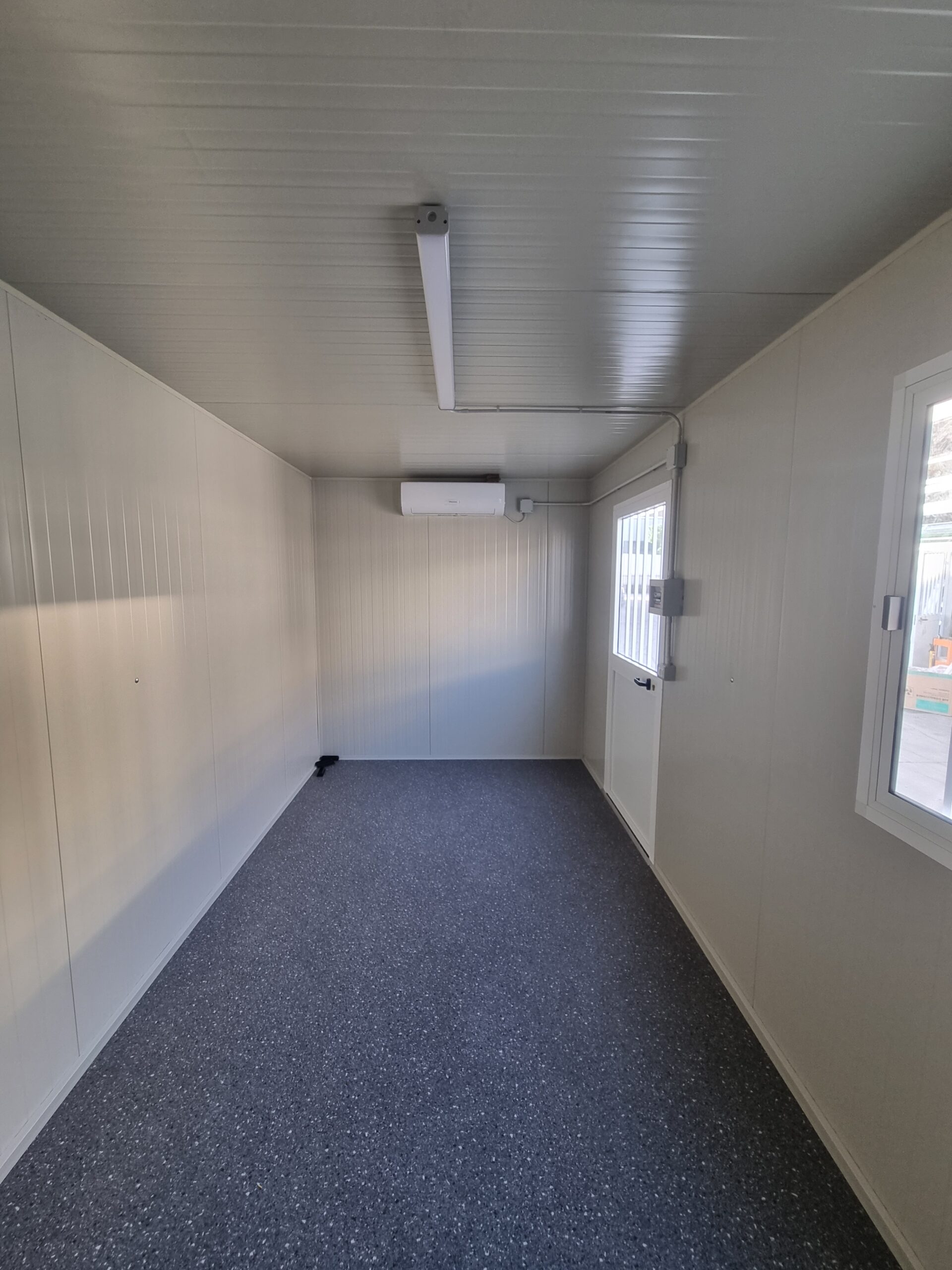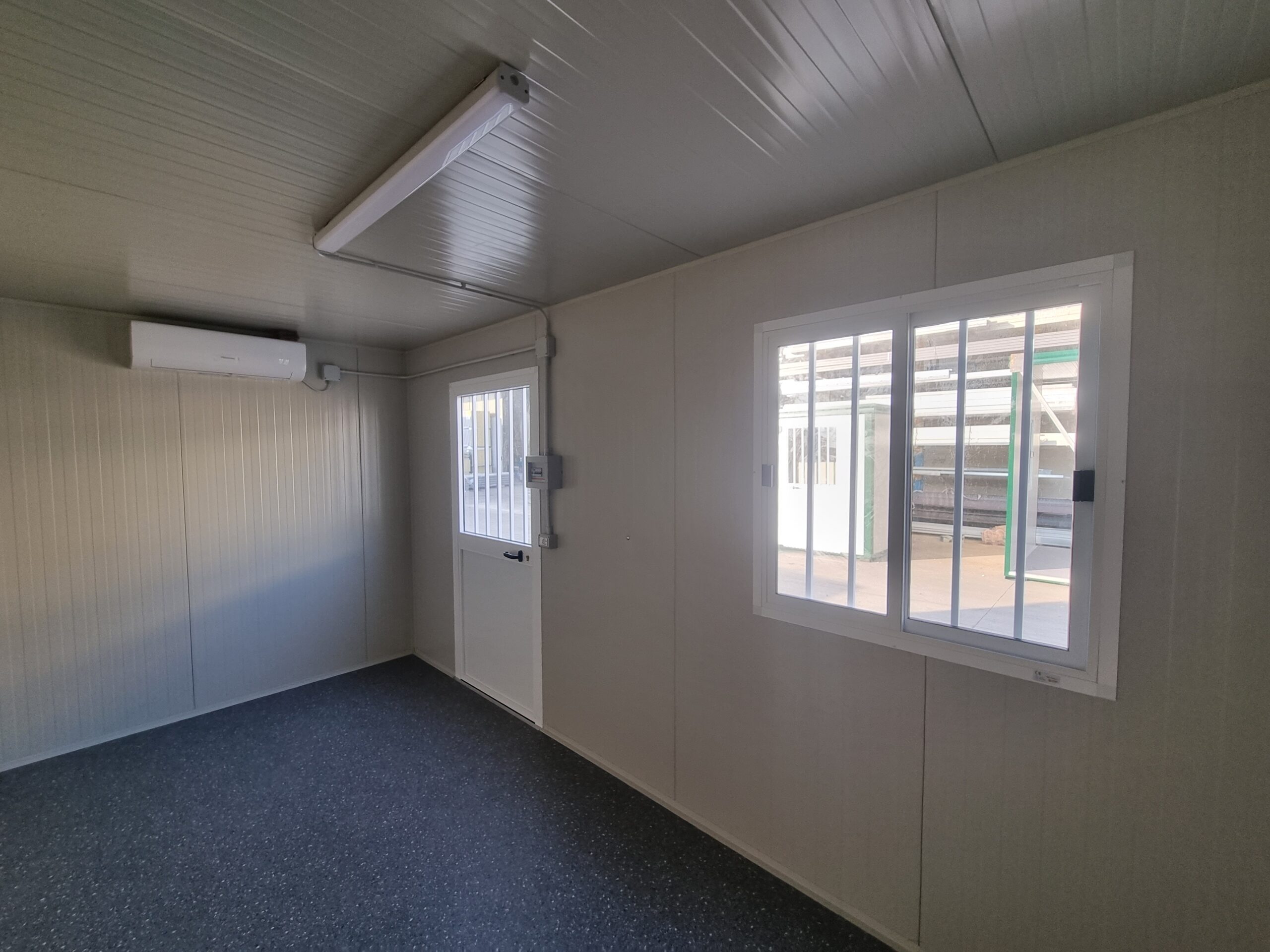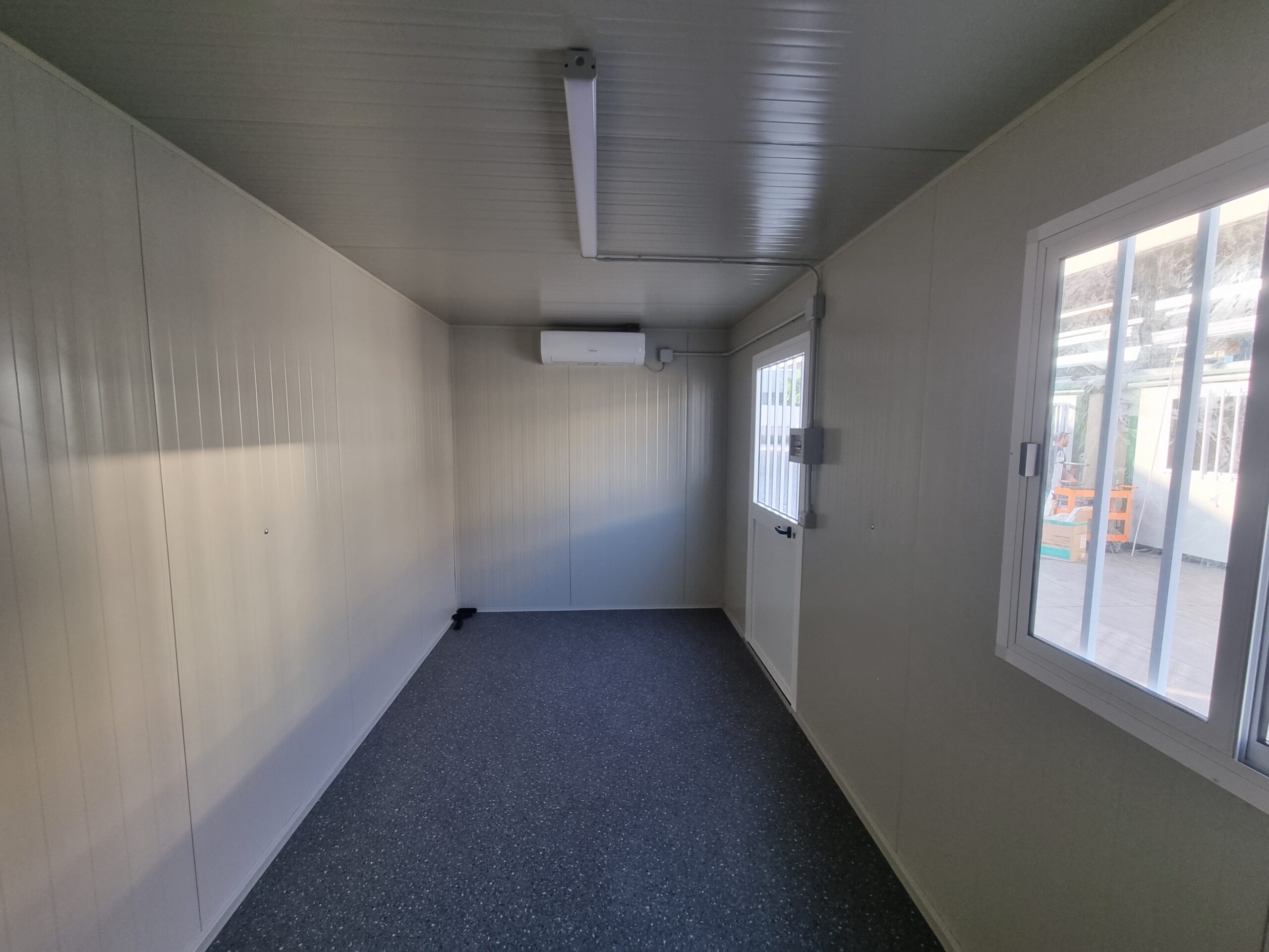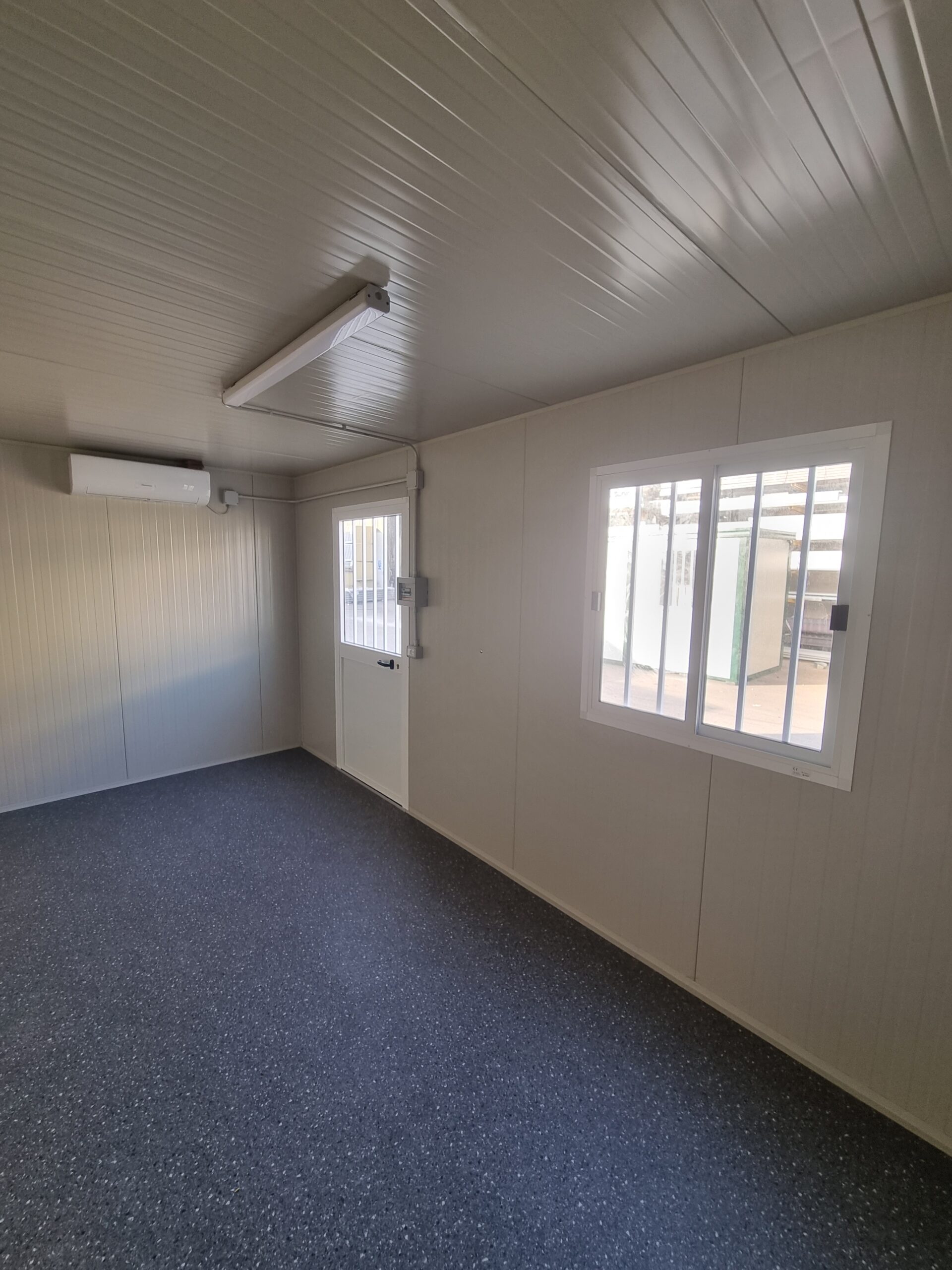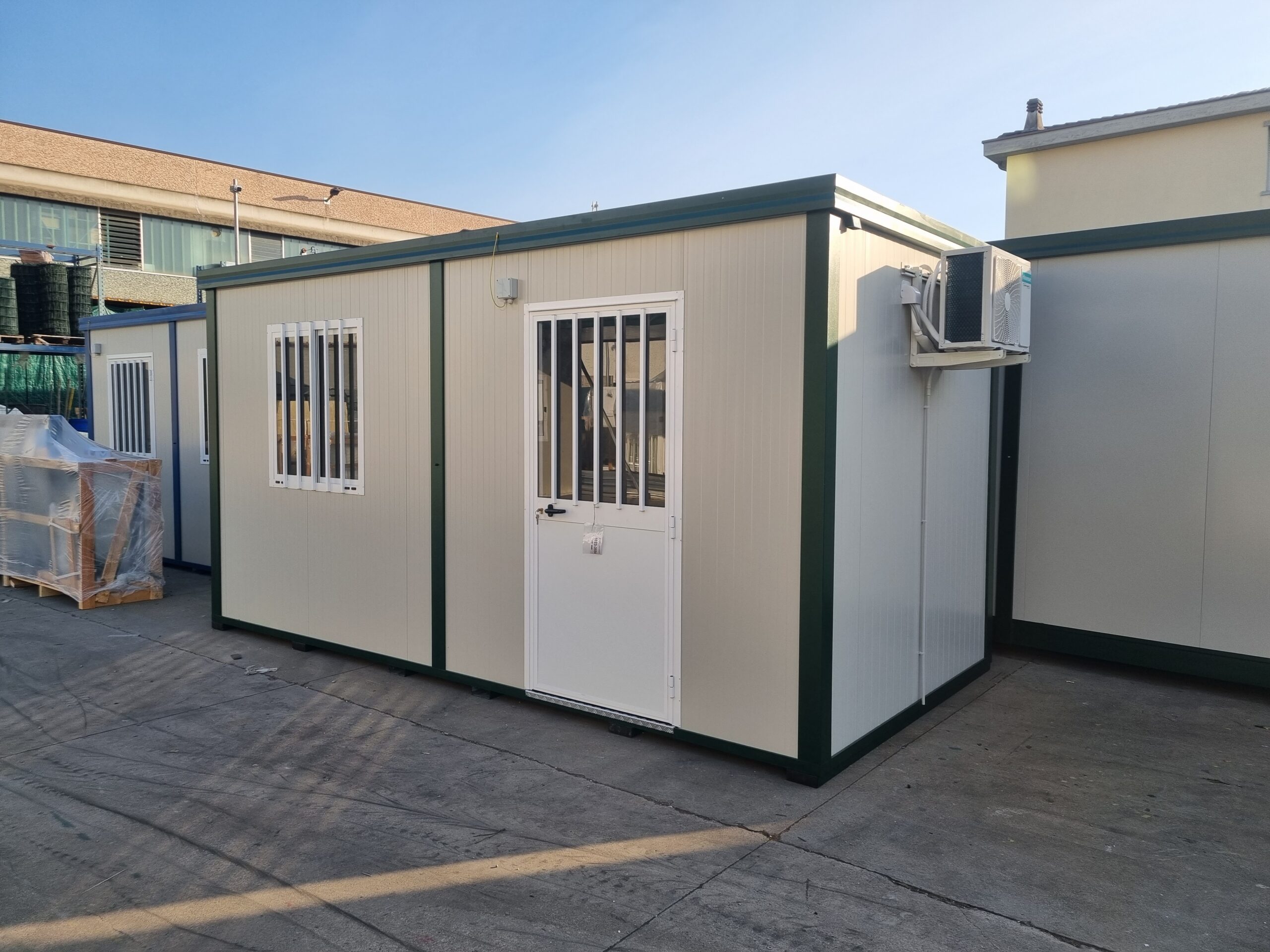 Basamento alta portanza con struttura in tubolare, rivestito con lamiera grecata, rivestito con legno IDRO V100 sp.18mm, rivestito con PVC Standard.