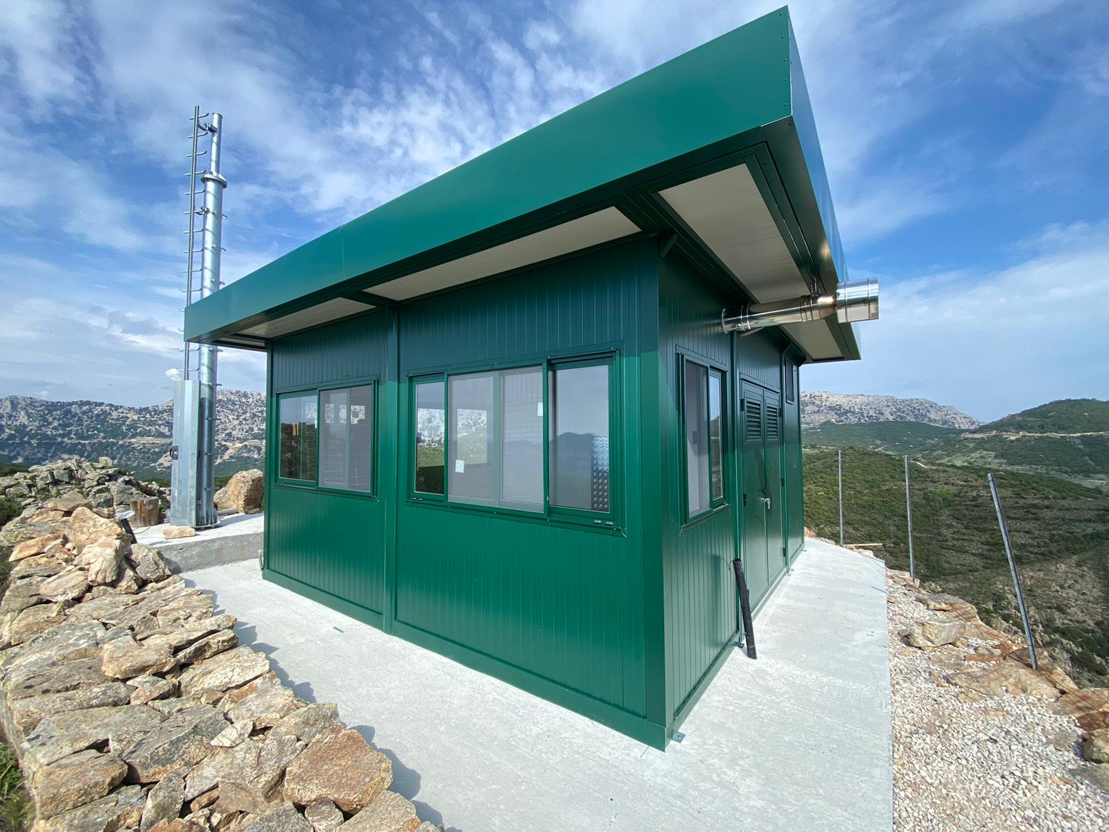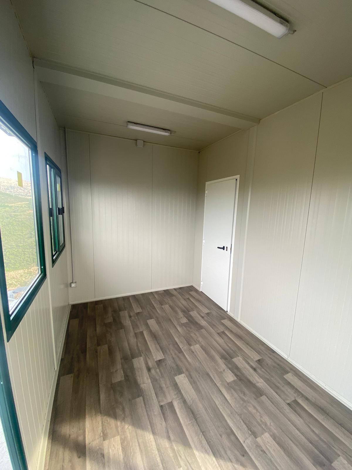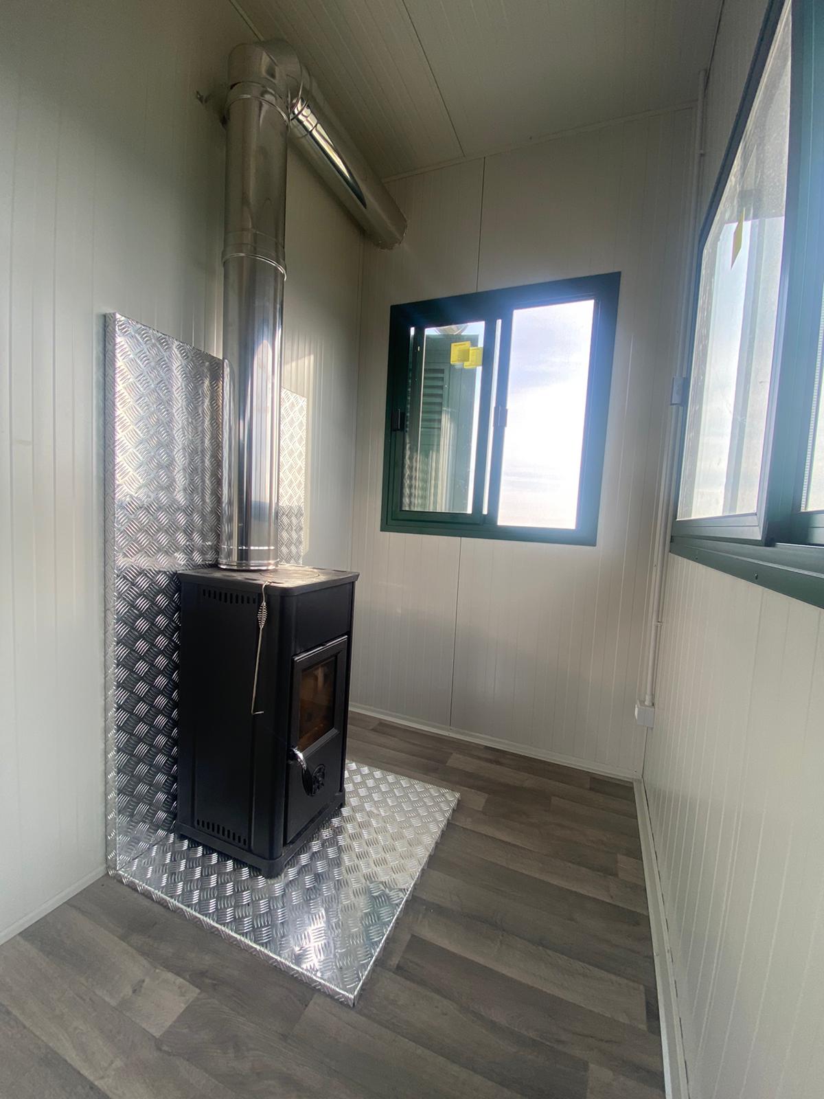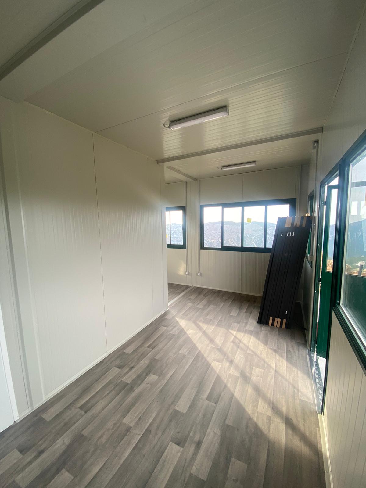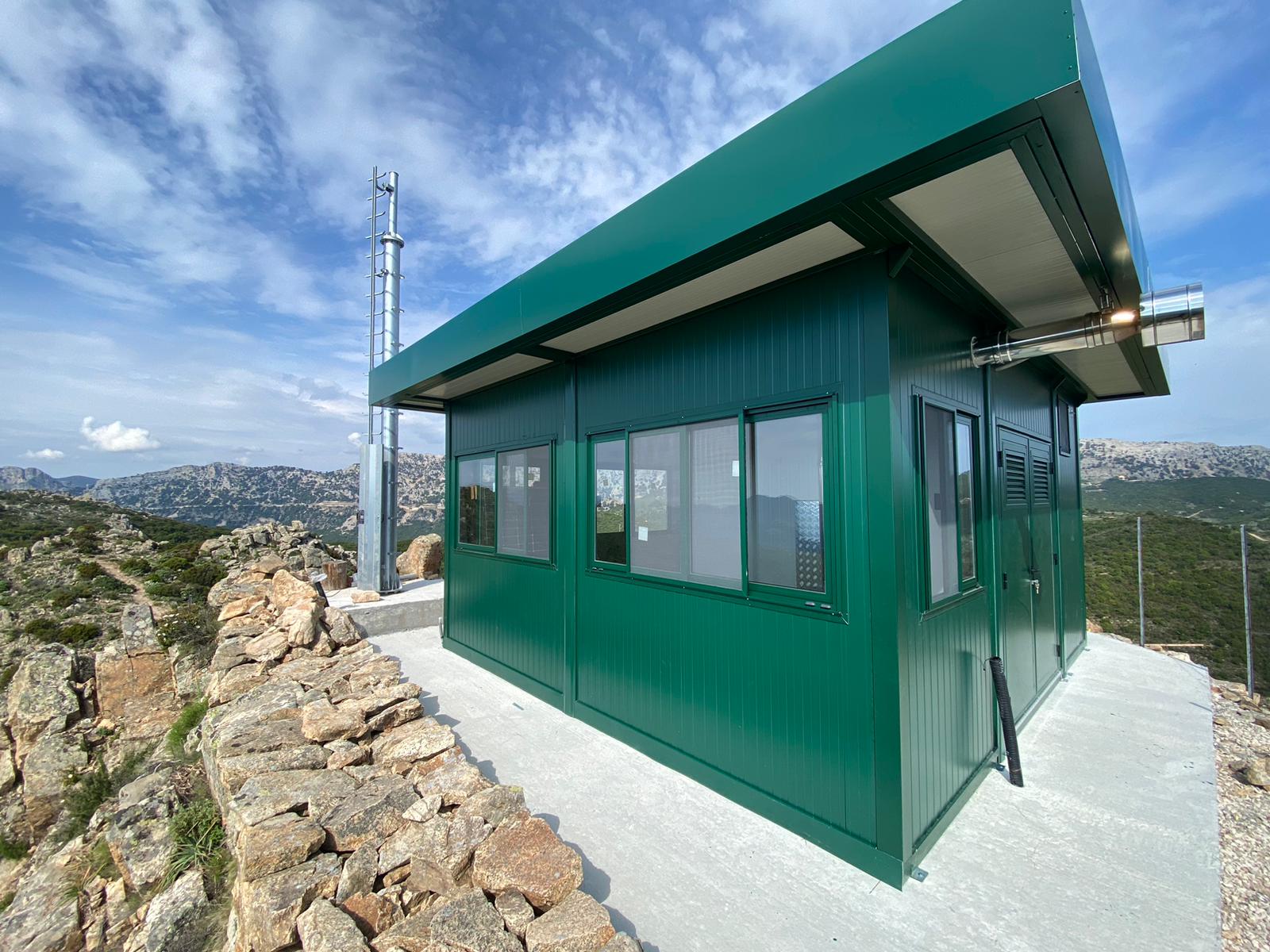 Basamento alta portanza con struttura in tubolare, rivestito con lamiera grecata, rivestito con legno IDRO V100 sp.18 mm, rivestito con PVC Finto Legno colore GRIGIO.