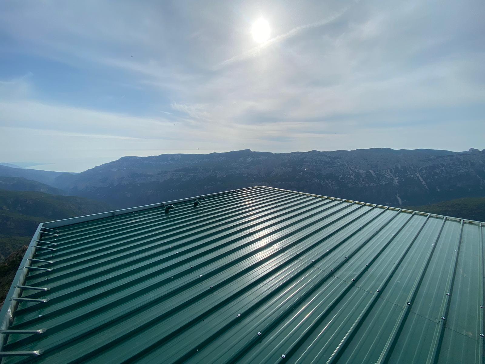 Secondo tetto, per maggiore coibentazione, massima ermeticità e durata nel tempo, con struttura in tubolare e lattonerie presso piegate, a una falda, rivestite con: