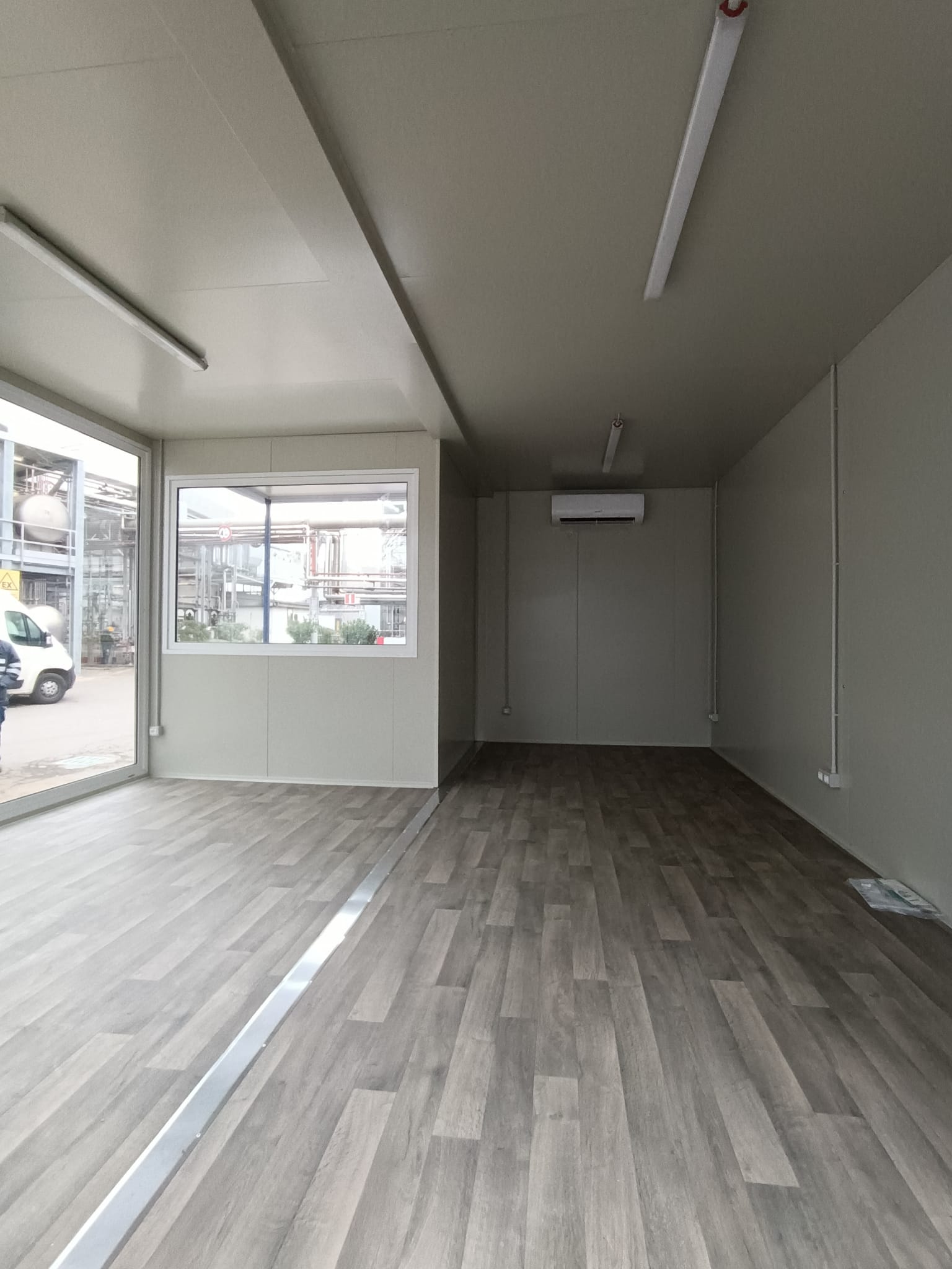 Basamento alta portanza con struttura in tubolare, rivestito con lamiera grecata, rivestito con legno IDRO V100 sp.18 mm, rivestito con: