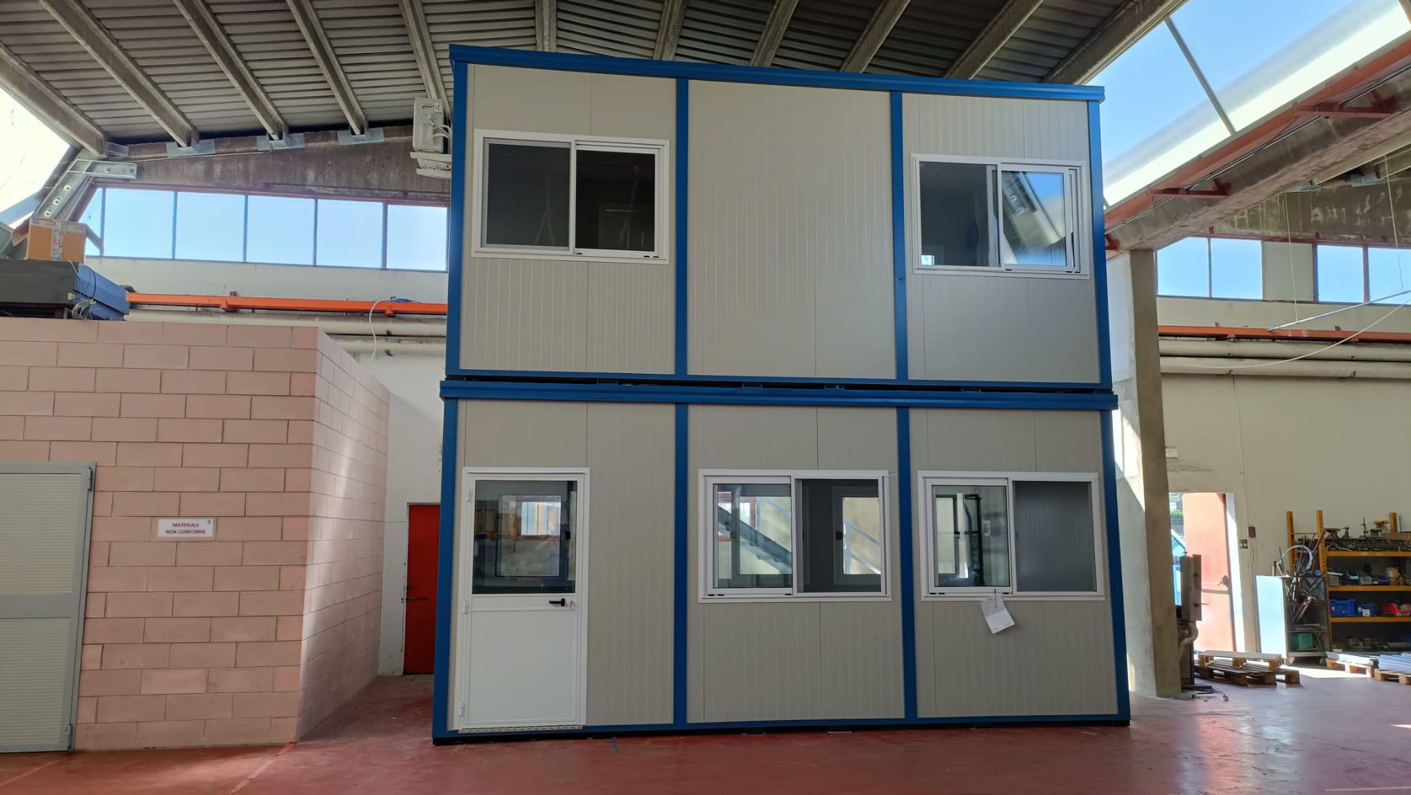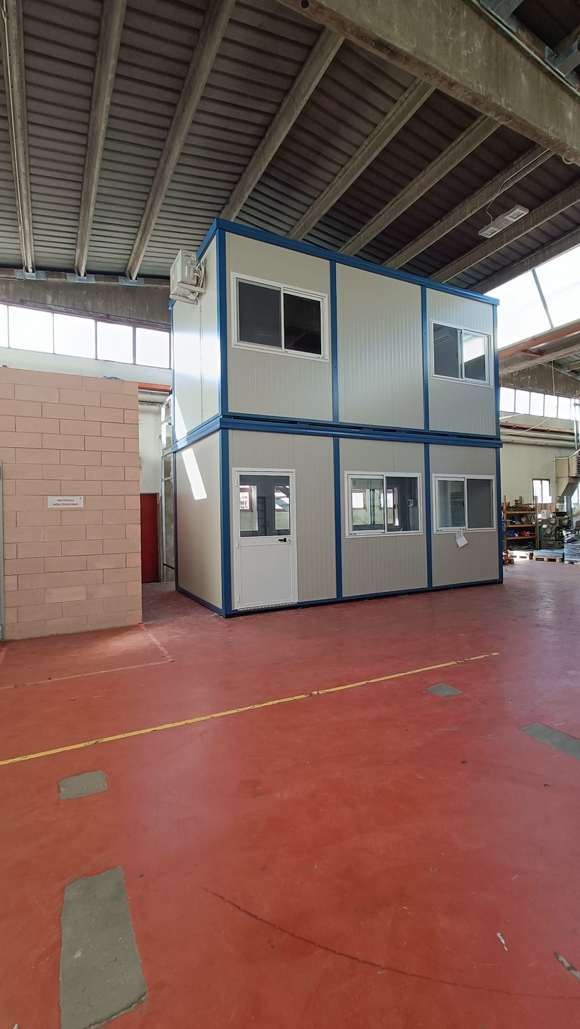 Basamento alta portanza con struttura in tubolare, rivestito con lamiera grecata, rivestito con legno IDRO V100 sp.18 mm, rivestito con: