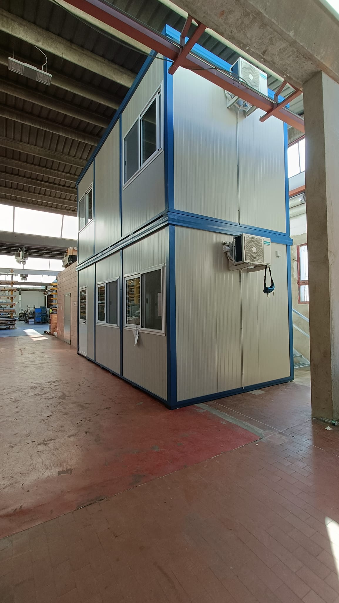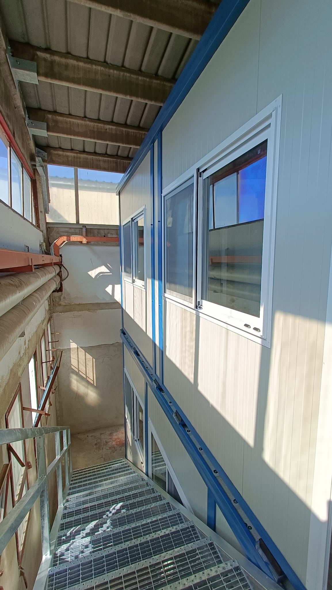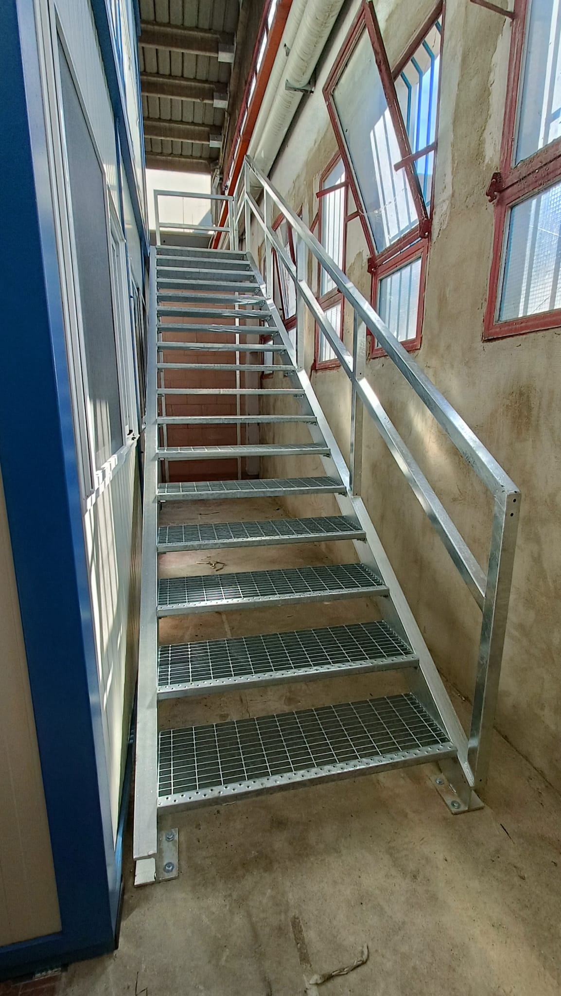 N.1 Scala di accesso a due rampe, completa di ballatoio, zincata a caldo, construttura in tubolare e gradini grigliati, completa di parapetto.
