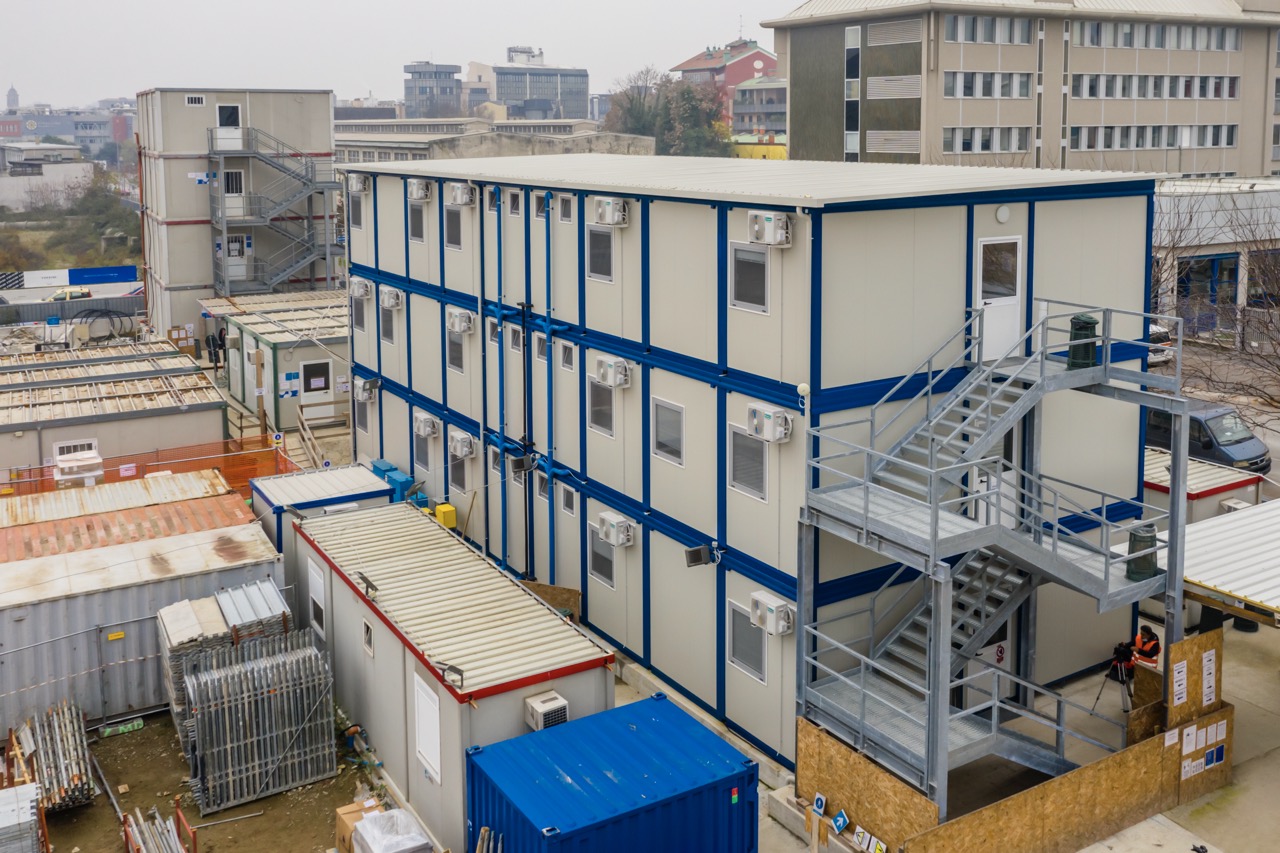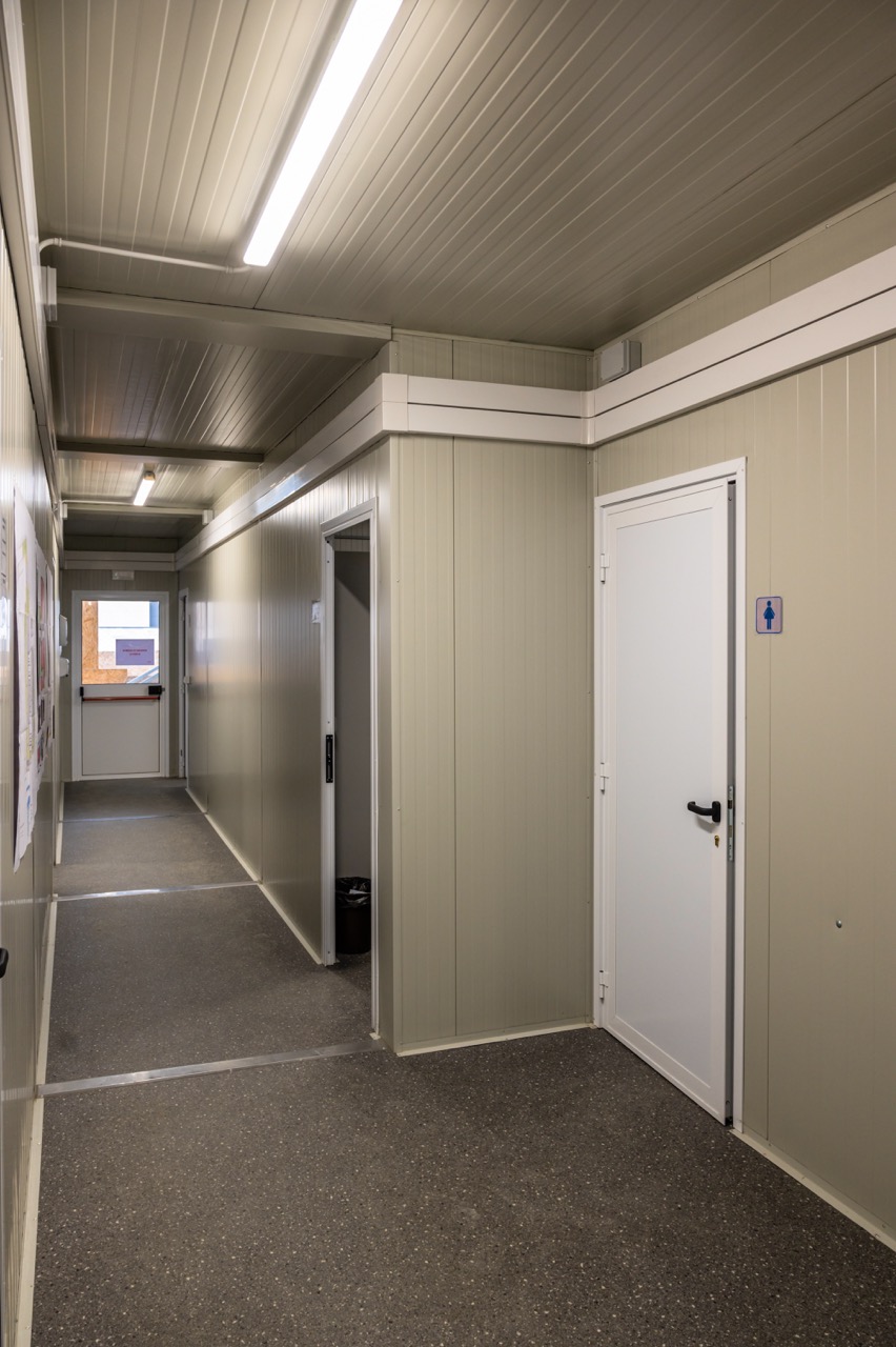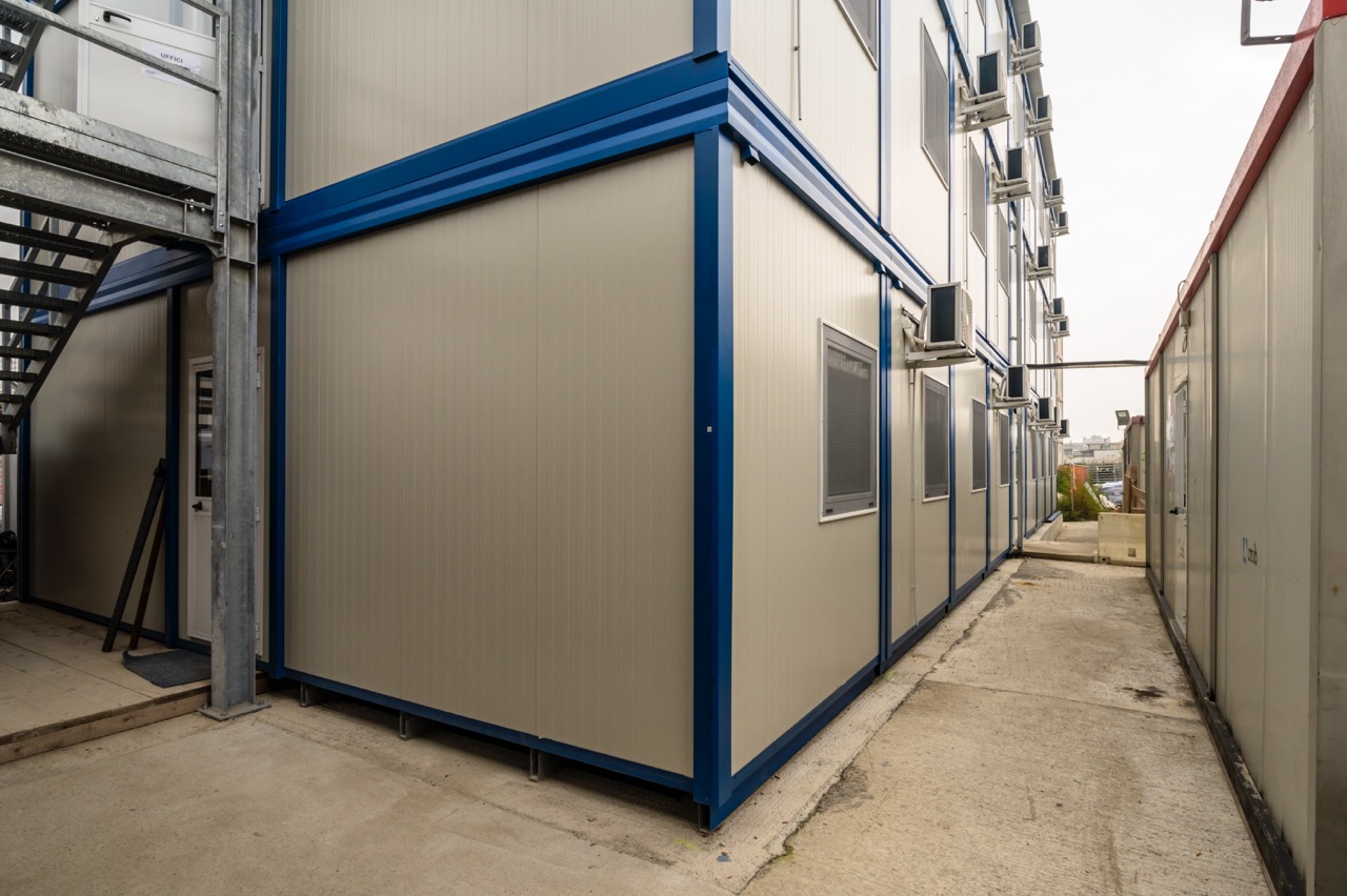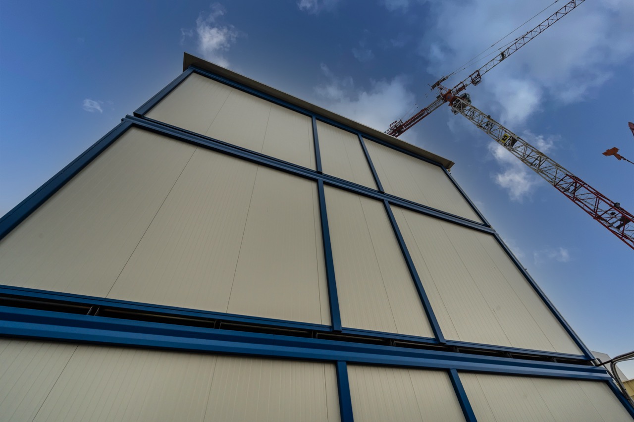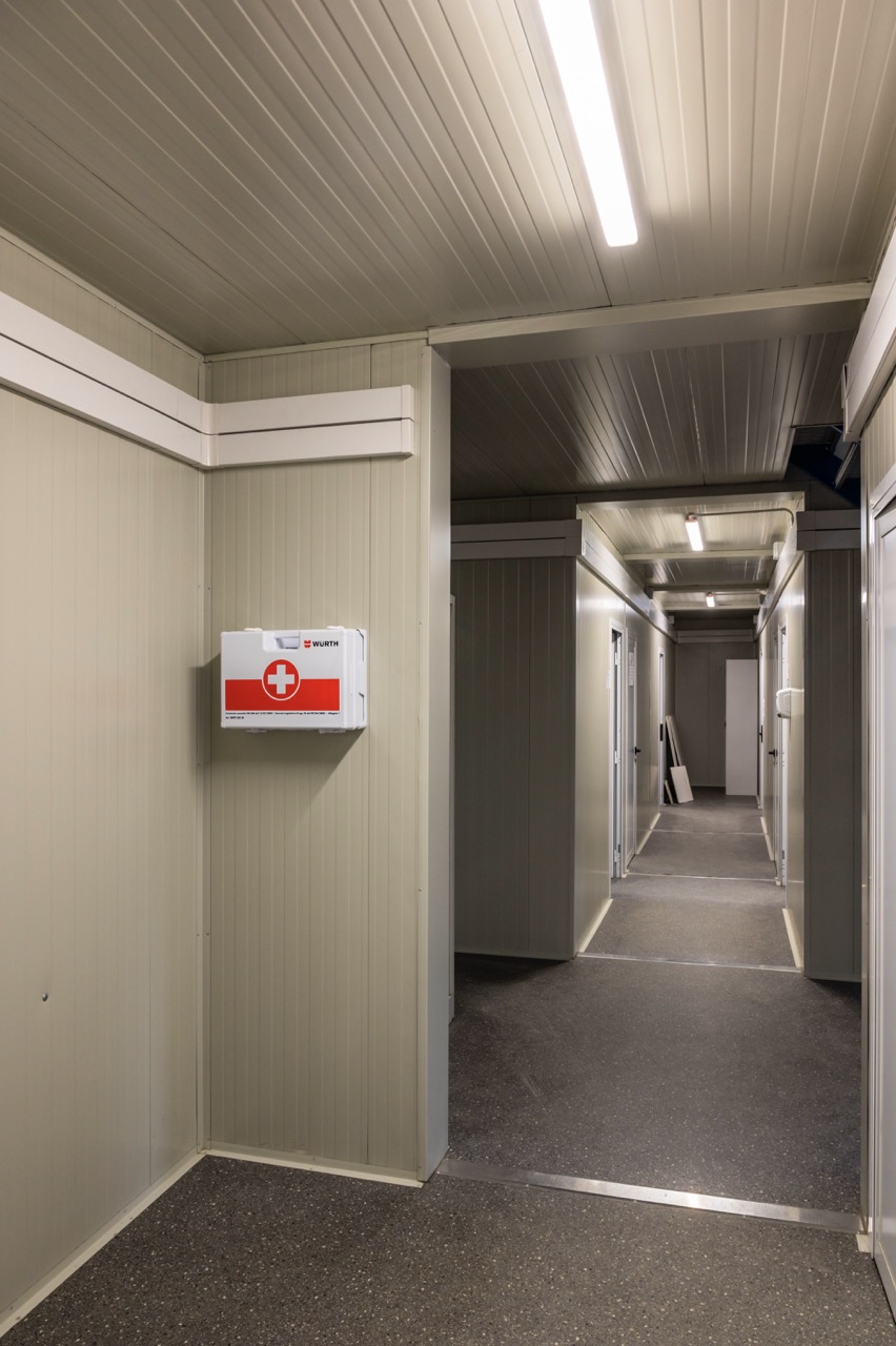Basamento alta portanza con struttura in tubolare, rivestita con lamiera grecata, rivestite con Pannello PARETE sp.40 mm – Poliuretano, rivestito con legno IDRO V100 sp.18 mm, rivestito con PVC Standard.