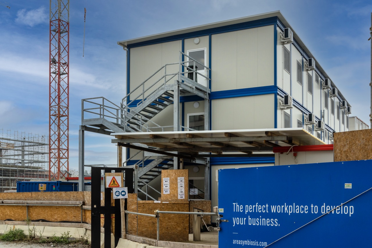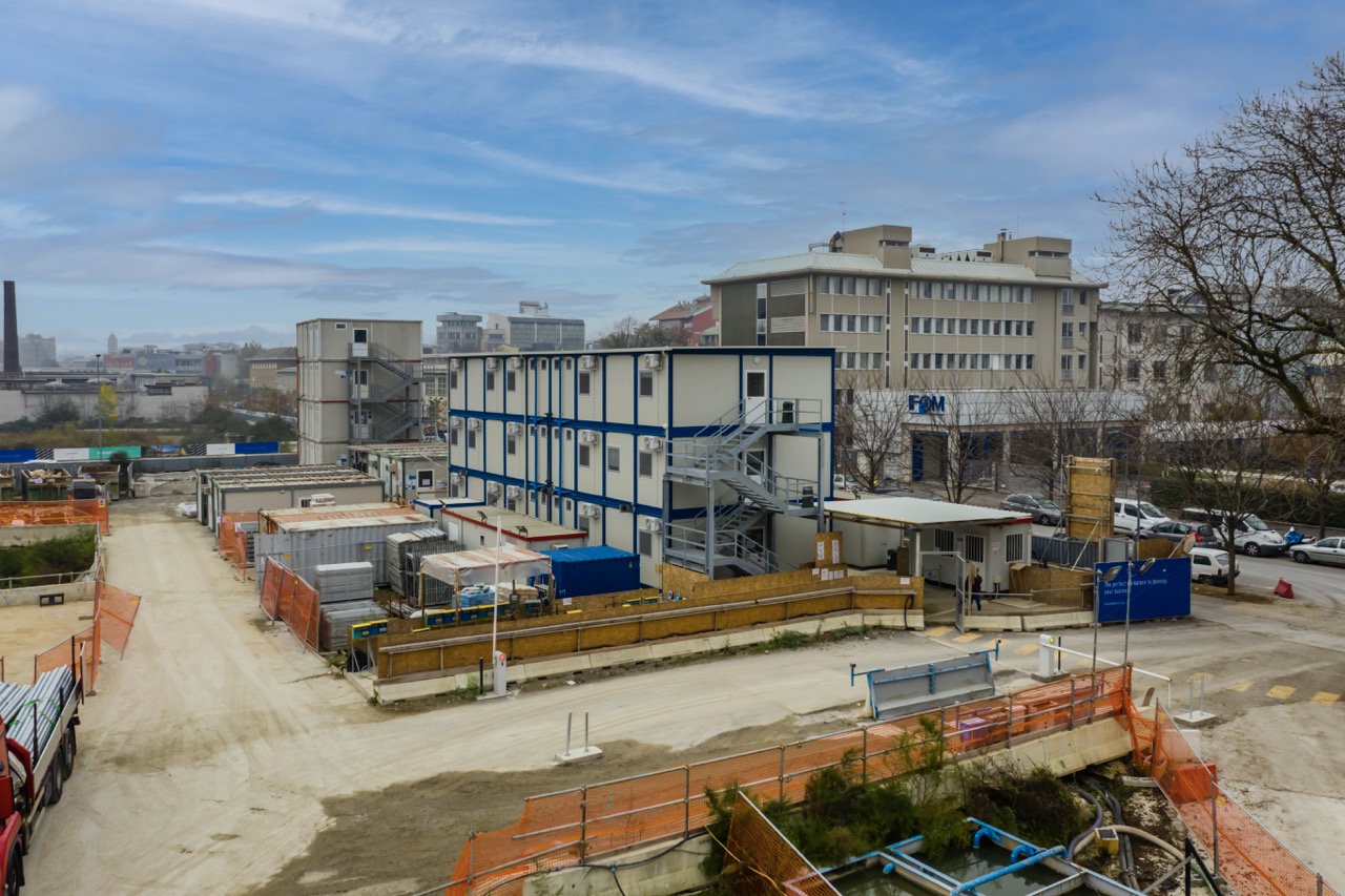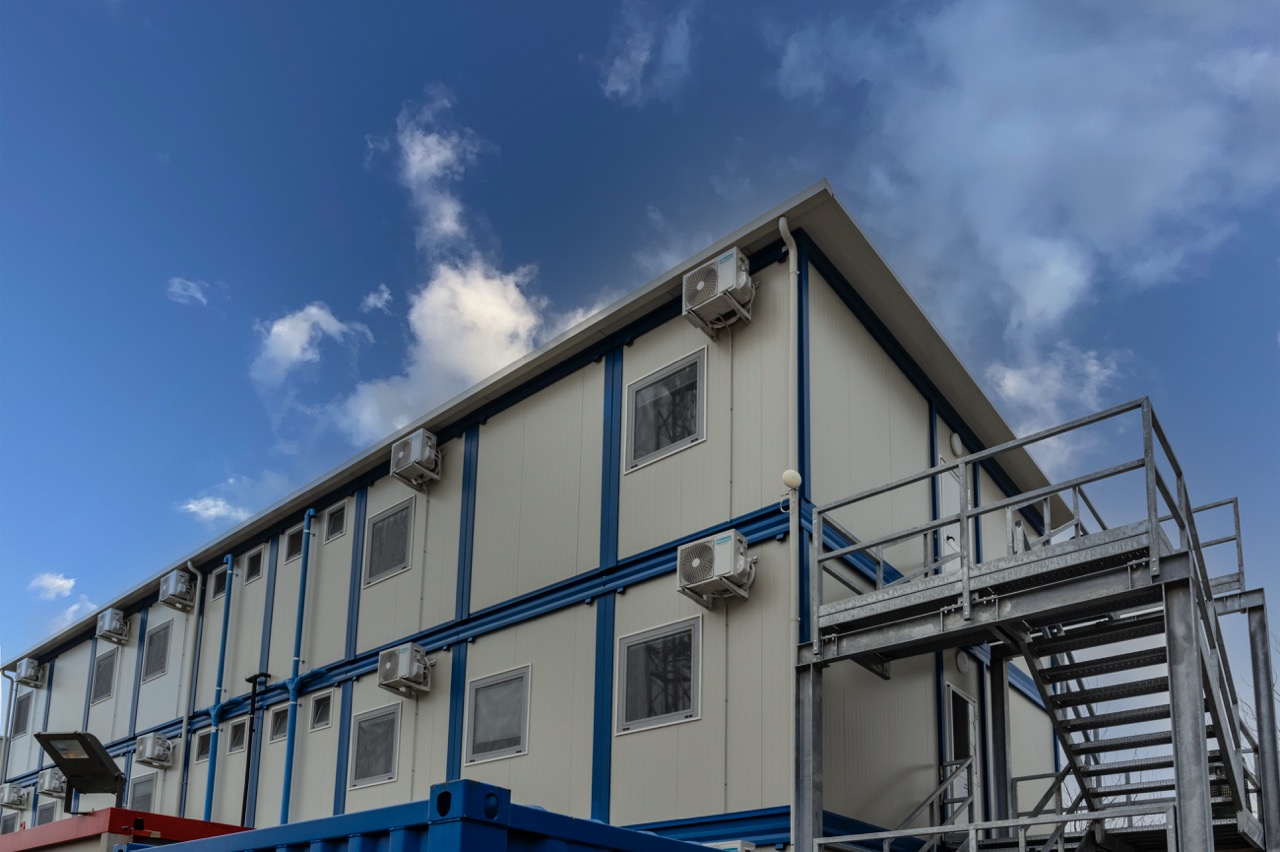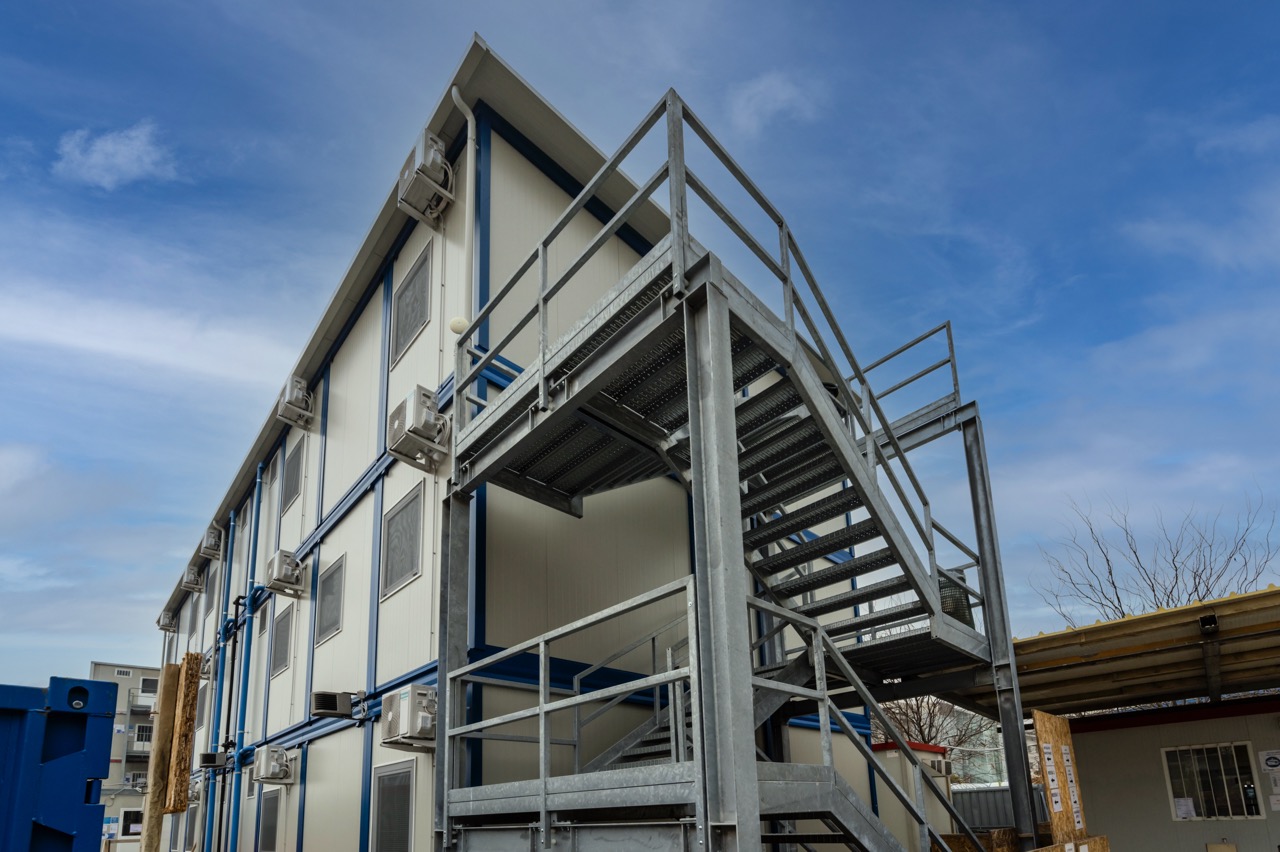 Basamento alta portanza con struttura in tubolare, rivestita con lamiera grecata, rivestite con Pannello PARETE sp.40 mm – Poliuretano, rivestito con legno IDRO V100 sp.18 mm, rivestito con PVC Standard.