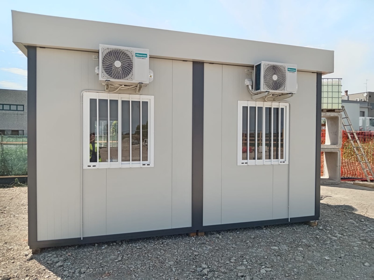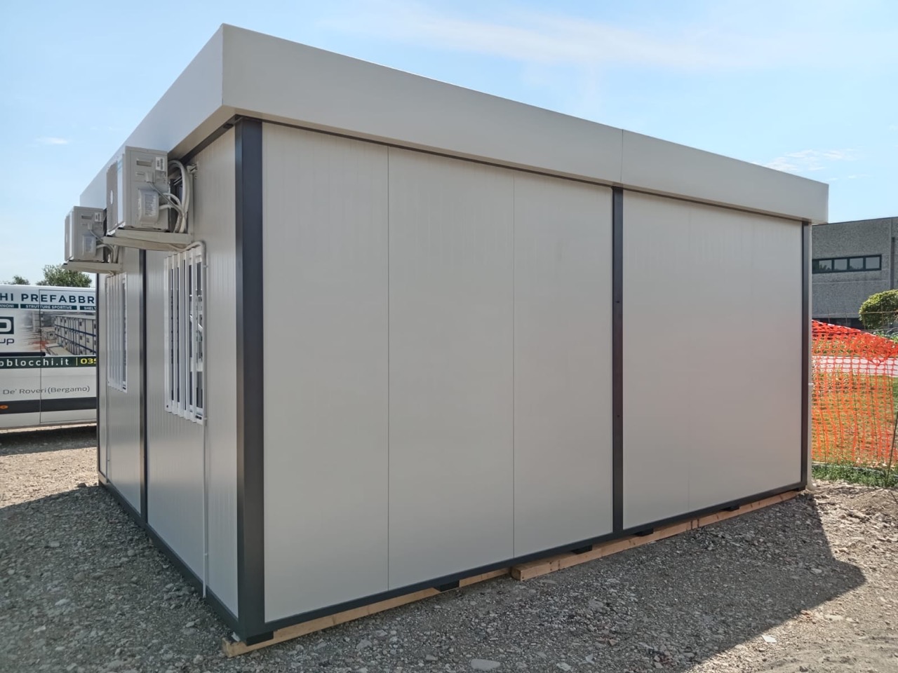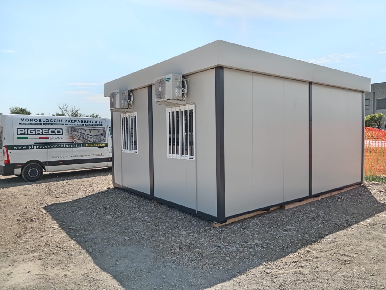 Basamento alta portanza con struttura in tubolare, rivestito con lamiera grecata, rivestita con legno IDRO V100sp.18 mm, rivestito con PVC Standard.