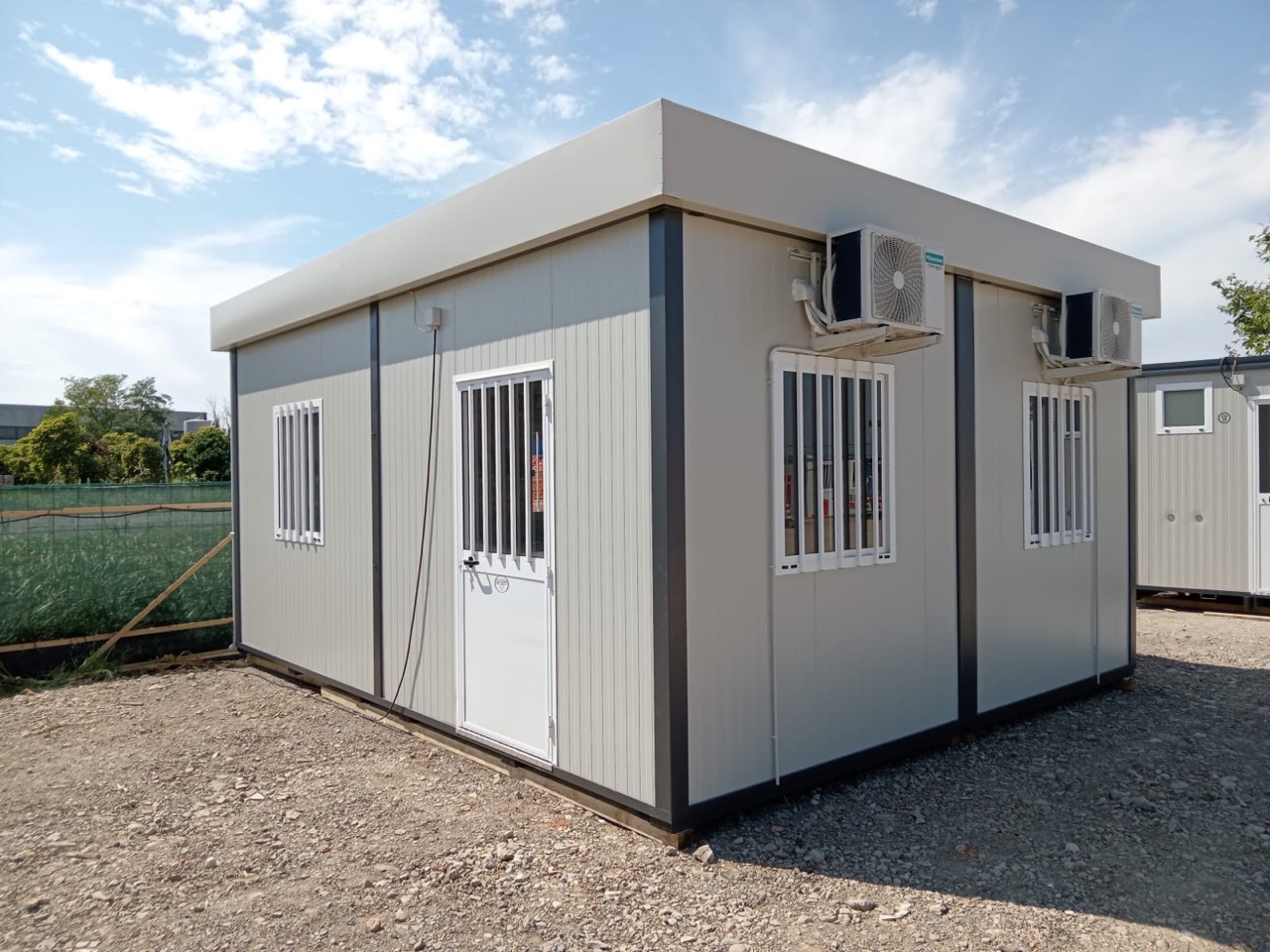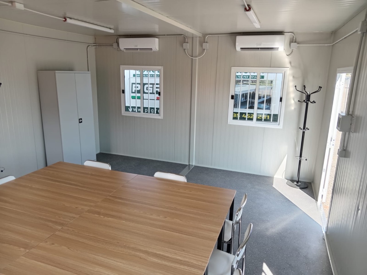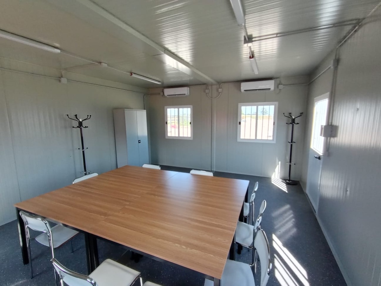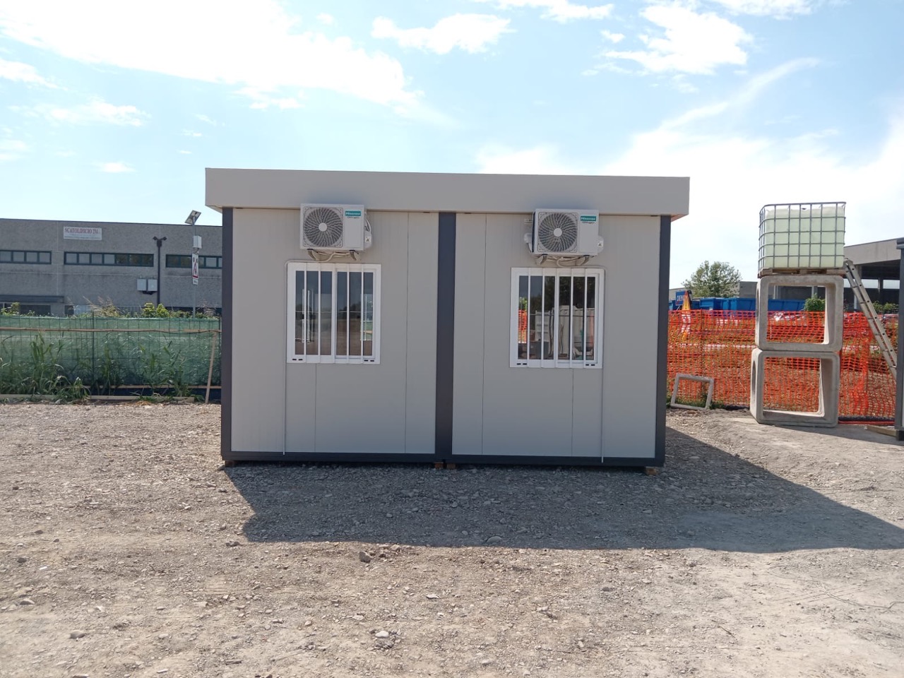 Basamento alta portanza con struttura in tubolare, rivestito con lamiera grecata, rivestita con legno IDRO V100sp.18 mm, rivestito con PVC Standard.
