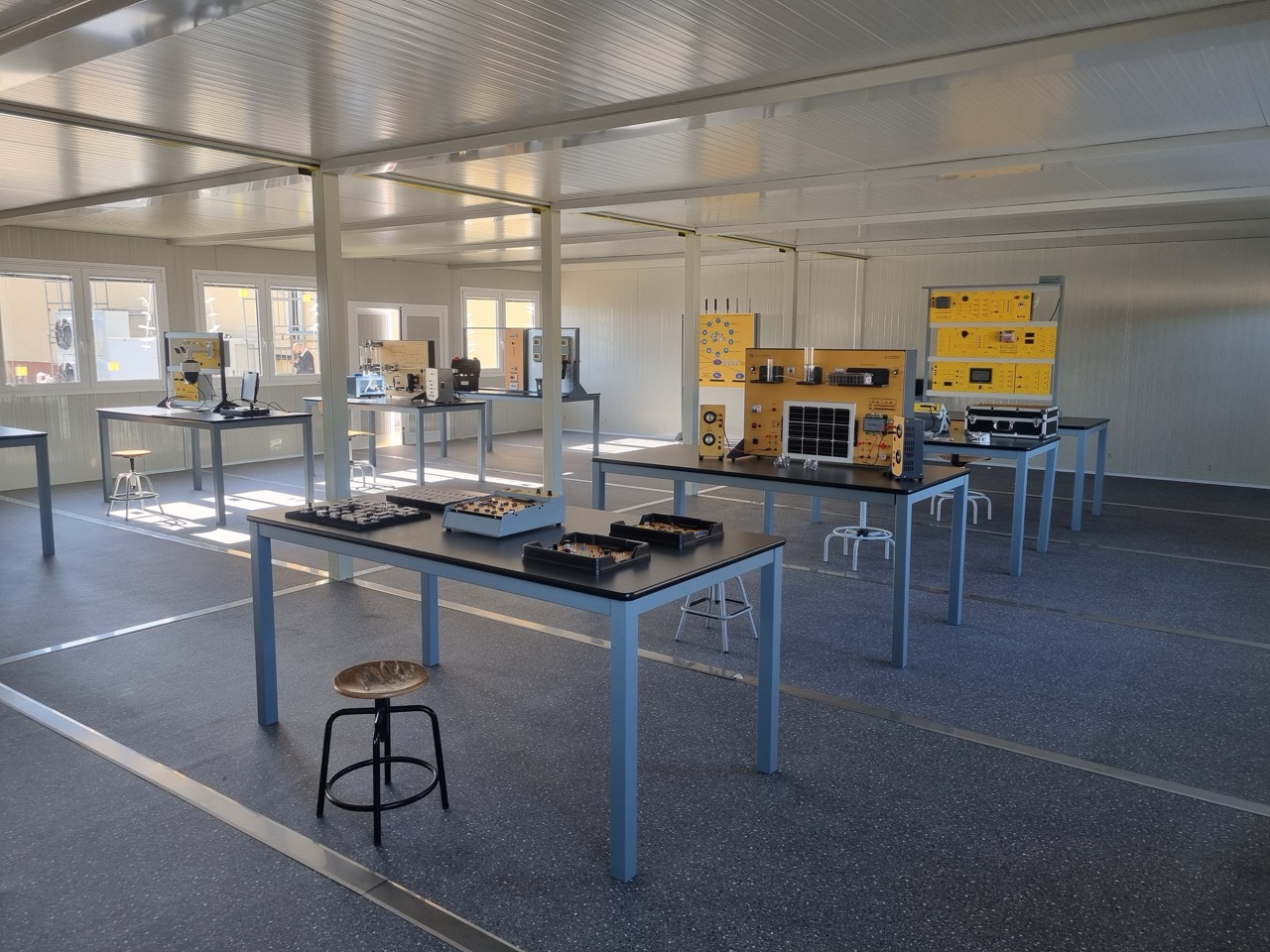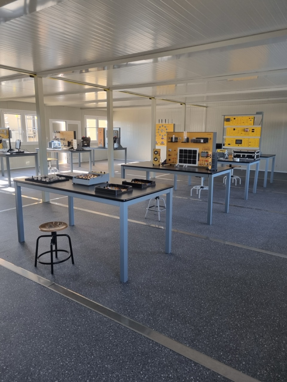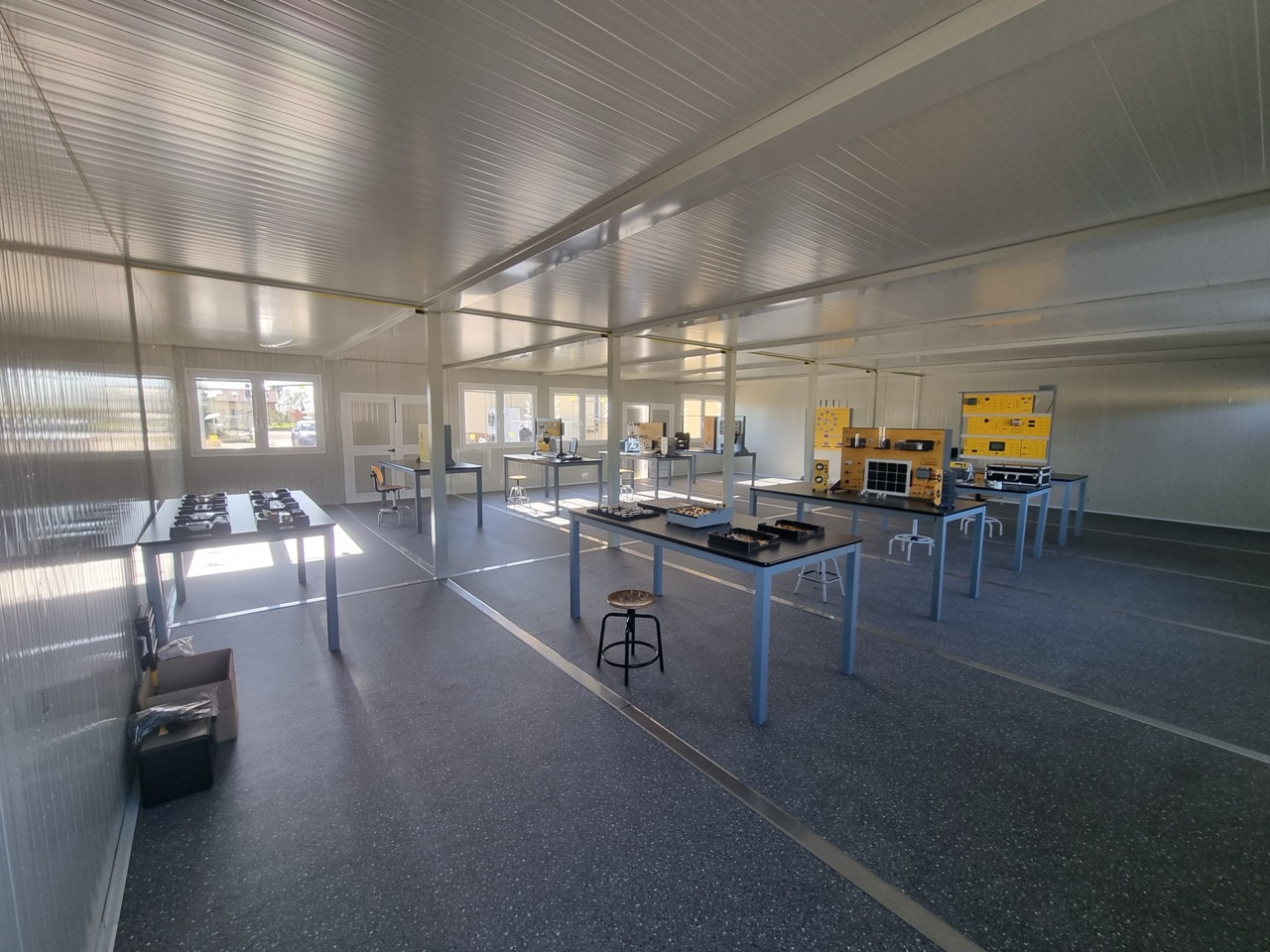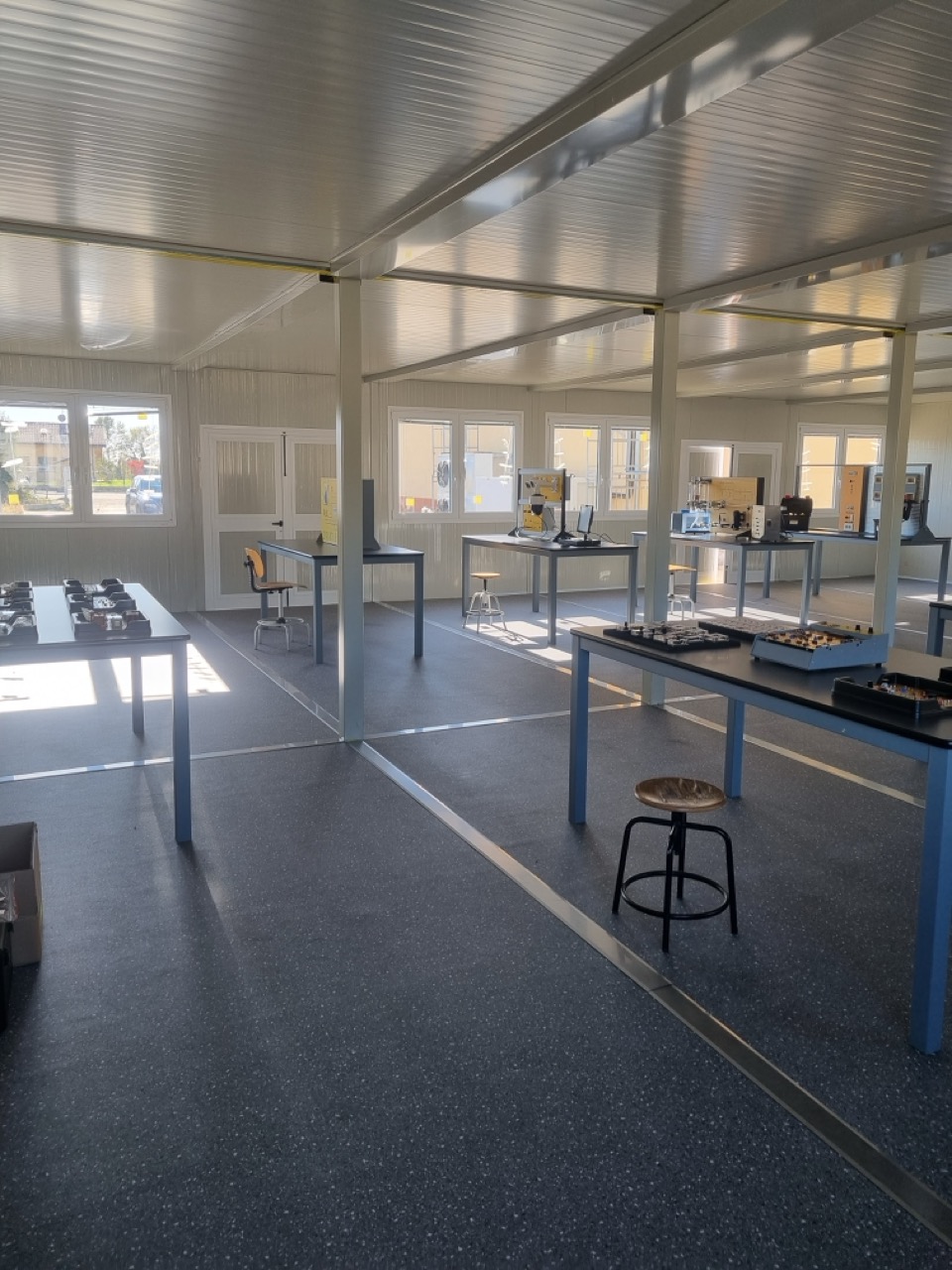 Basamento alta portanza con struttura in tubolare, rivestito con Pannello Parete sp.80 mm – Lana Minerale EI60, rivestito con lamiera grecata, rivestita con legno cemento sp.16 mm, rivestito con PVCStandard.