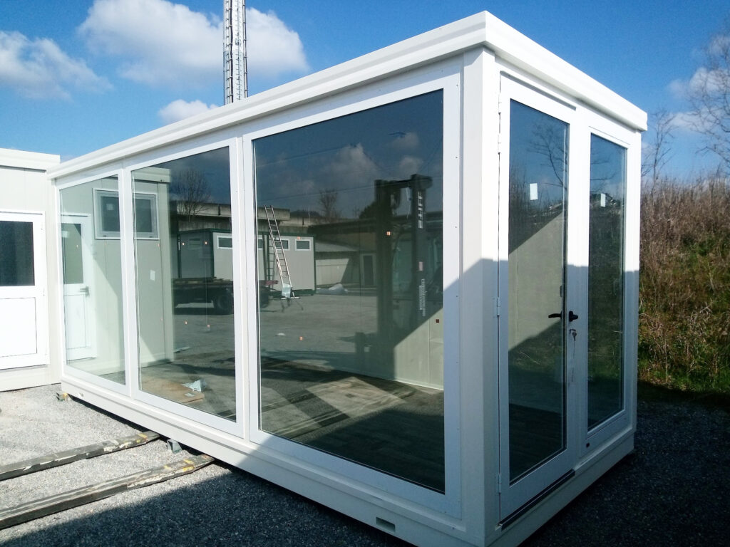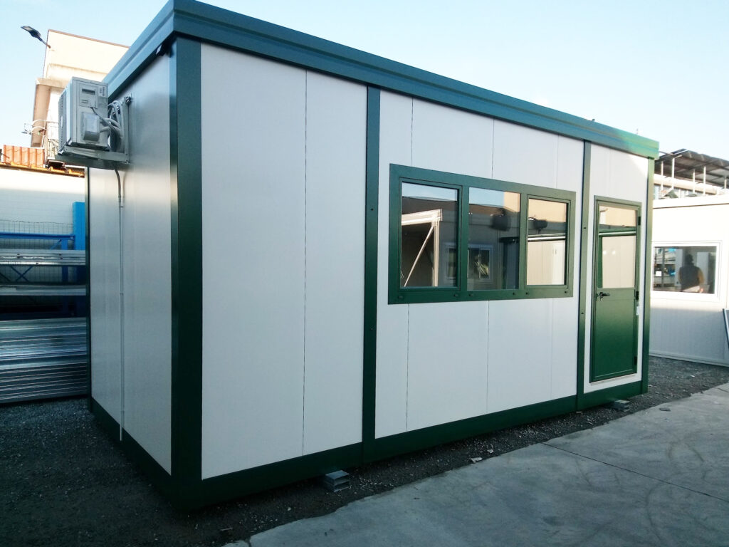 Descrizione Monoblocco con dimensioni al tetto 400 x 200 cm adatto per uso ufficio. Struttura presso piegata sp.15/10 mm, saldata