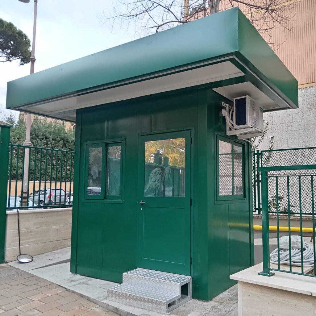 Descrizione Monoblocco uso PORTINERIA con struttura presso piegata sp.15/10 mm, saldata in continuo colore RAL 6005, Fondo Finire Anticorrosivo. Caratteristiche