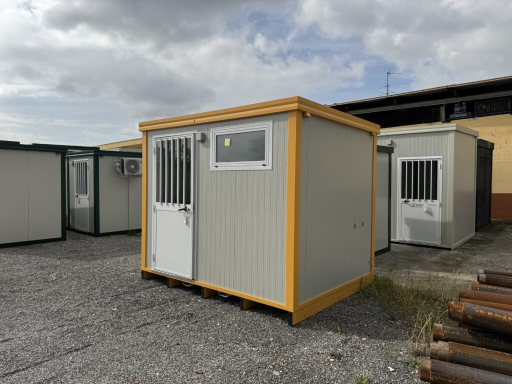 Descrizione Monoblocco uso DEPOSITO e RIMESSA ANIMALI, con struttura presso piegata sp.15/10 mm, saldata in continuo colore RAL 7006, Fondo