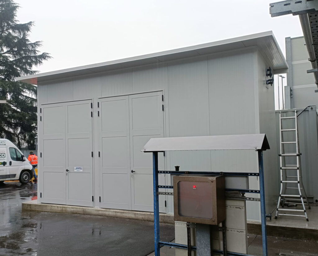Descrizione Monoblocco uso SHELTER, con struttura presso piegata sp.15/10 mm, saldata in continuo colore RAL BIANCO GRIGIO-PIGRECO. Fondo Finire Anticorrosivo