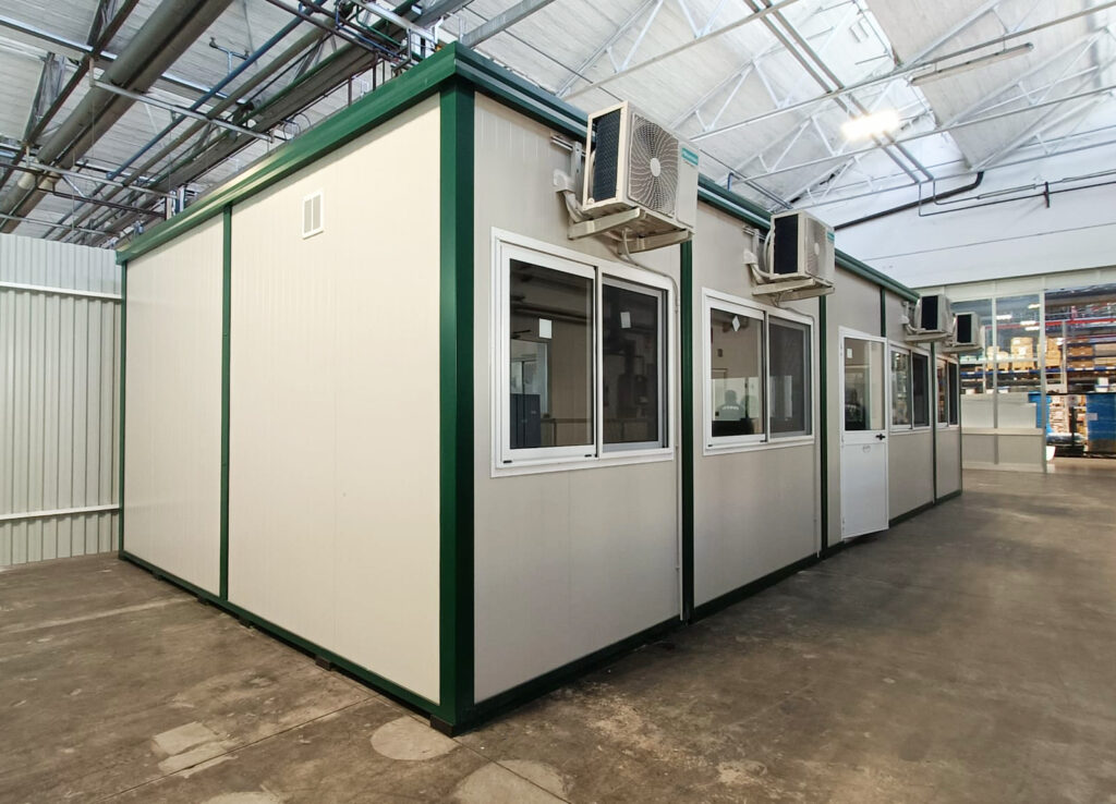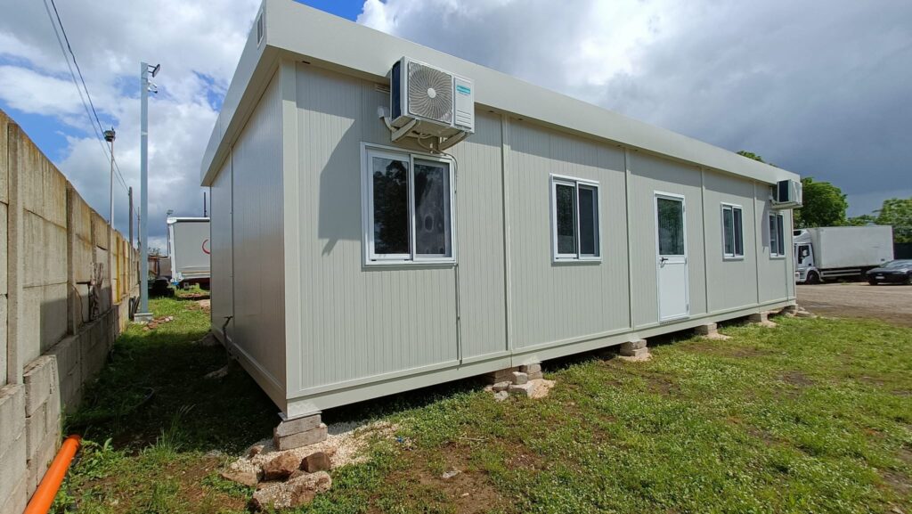 Descrizione Monoblocco 500 x 250 cm adatto per cantieri di medie/grandi dimensioni. Ideale per uffici, sale riunioni, infermerie e mense,