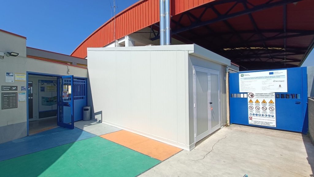 Descrizione Monoblocco 300 x 200. Adatto come locale Zona Filtro per le aziende Agricole. Con struttura presso piegata sp.15/10 mm,