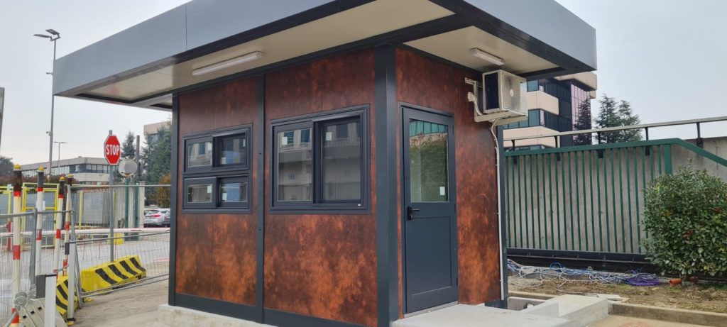 Download Scheda tecnica Disegno tecnico Descrizione Monoblocco uso PORTINERIA con BAGNO – L.10, con struttura presso piegata sp.30/10 mm, saldata